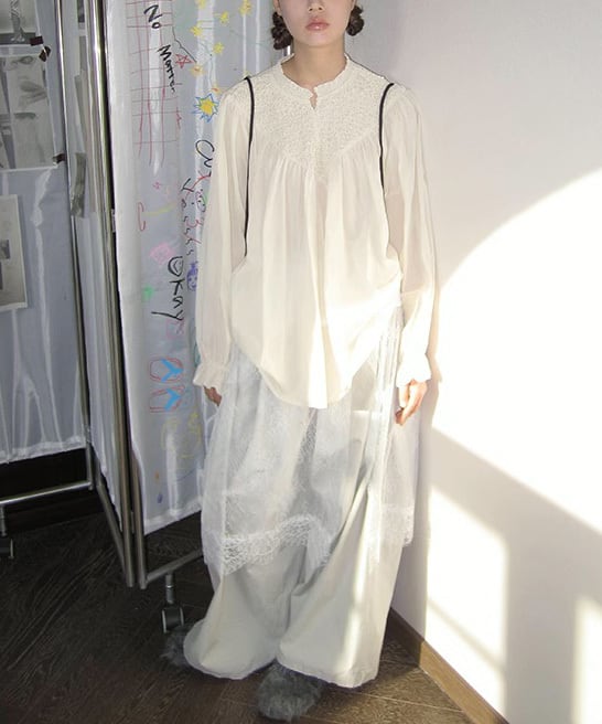 プリーツレースシャツ p0756