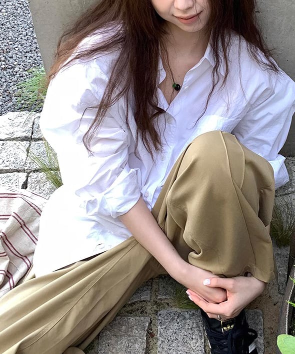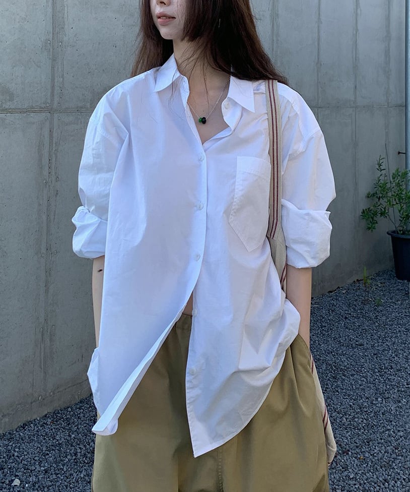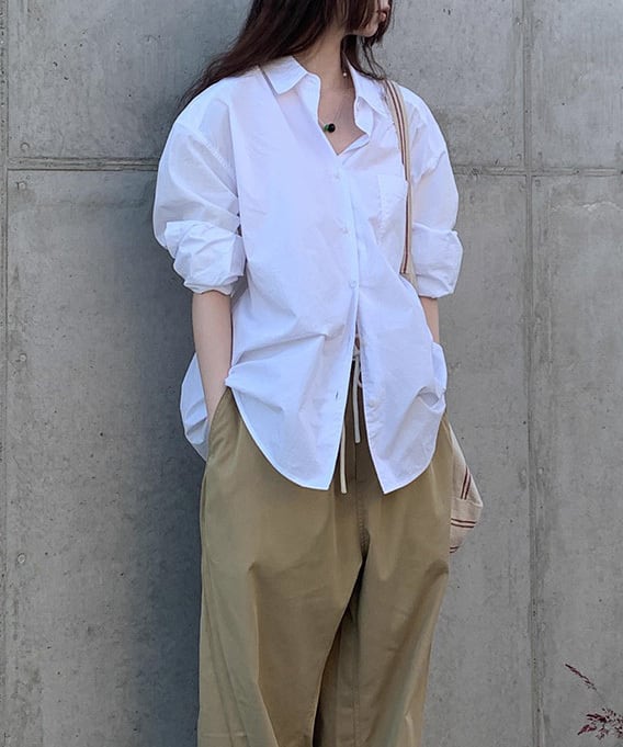 ゆるっとしたシルエットとミニマルなデザインが絶妙なバランスのコットンシャツ。