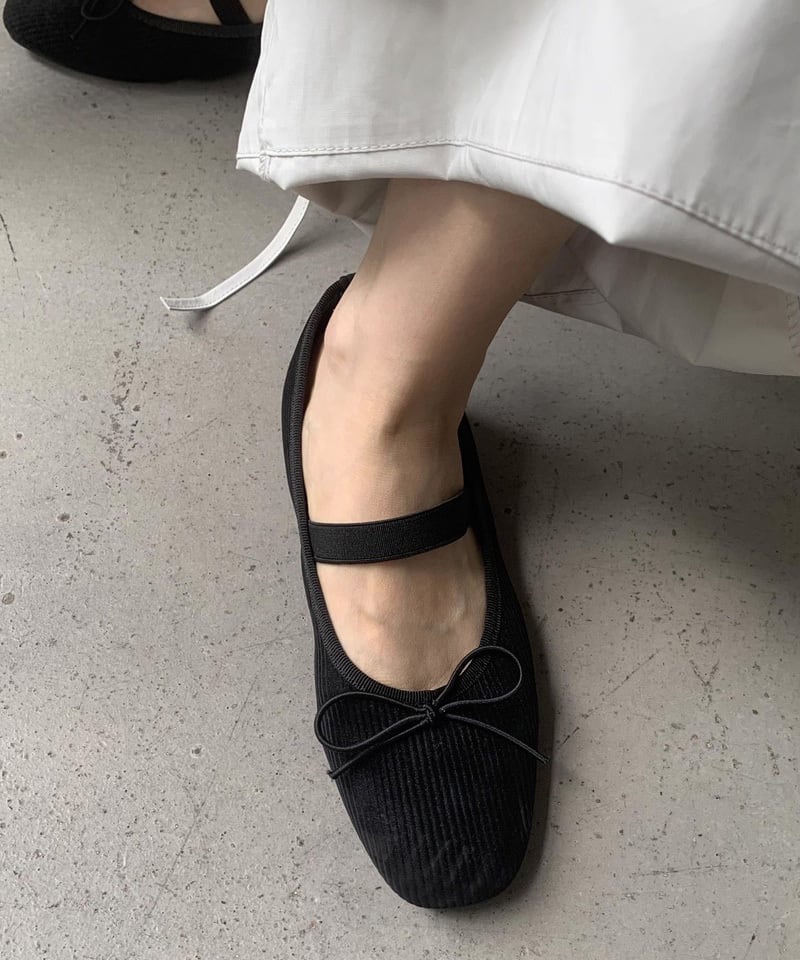 ベルベットの光沢感とクラシカルなストラップが大人可愛いパンプス。