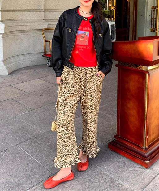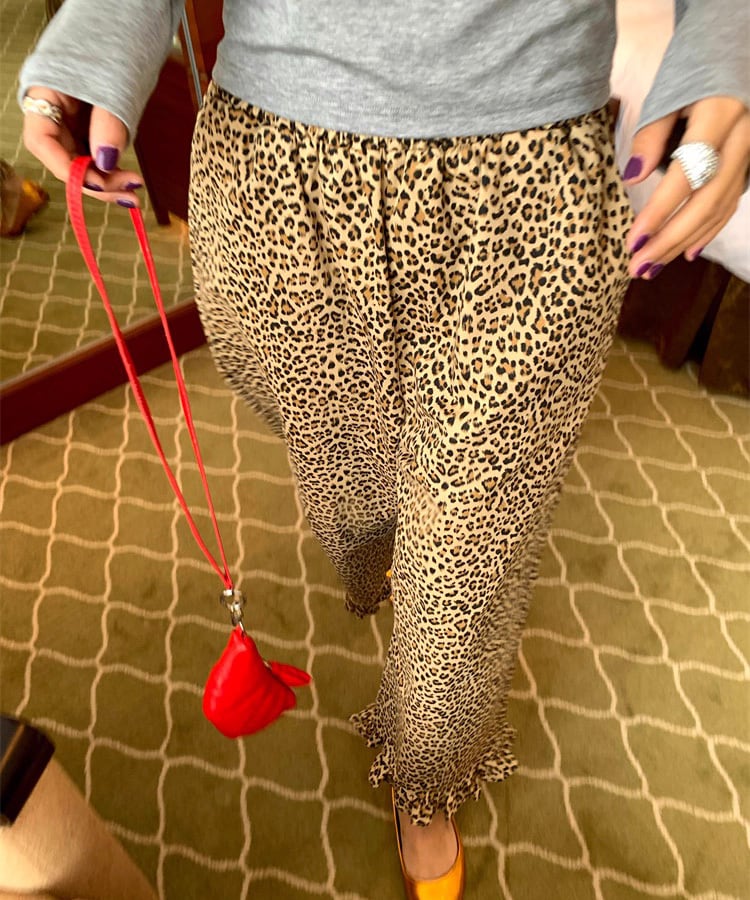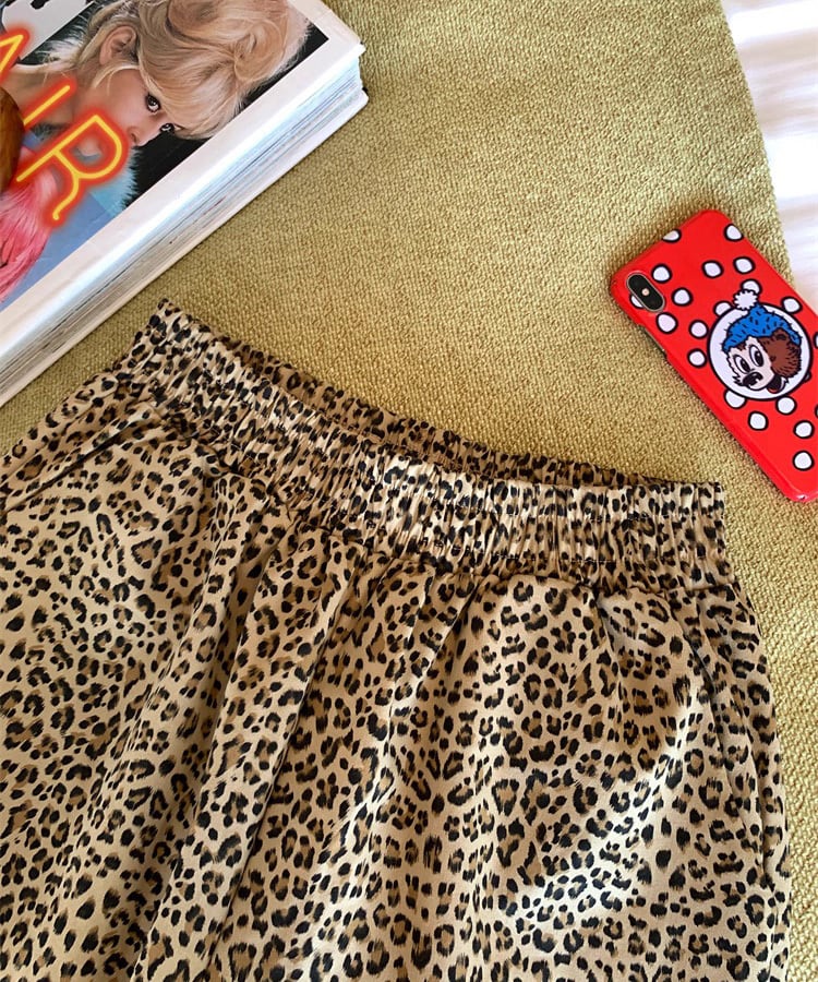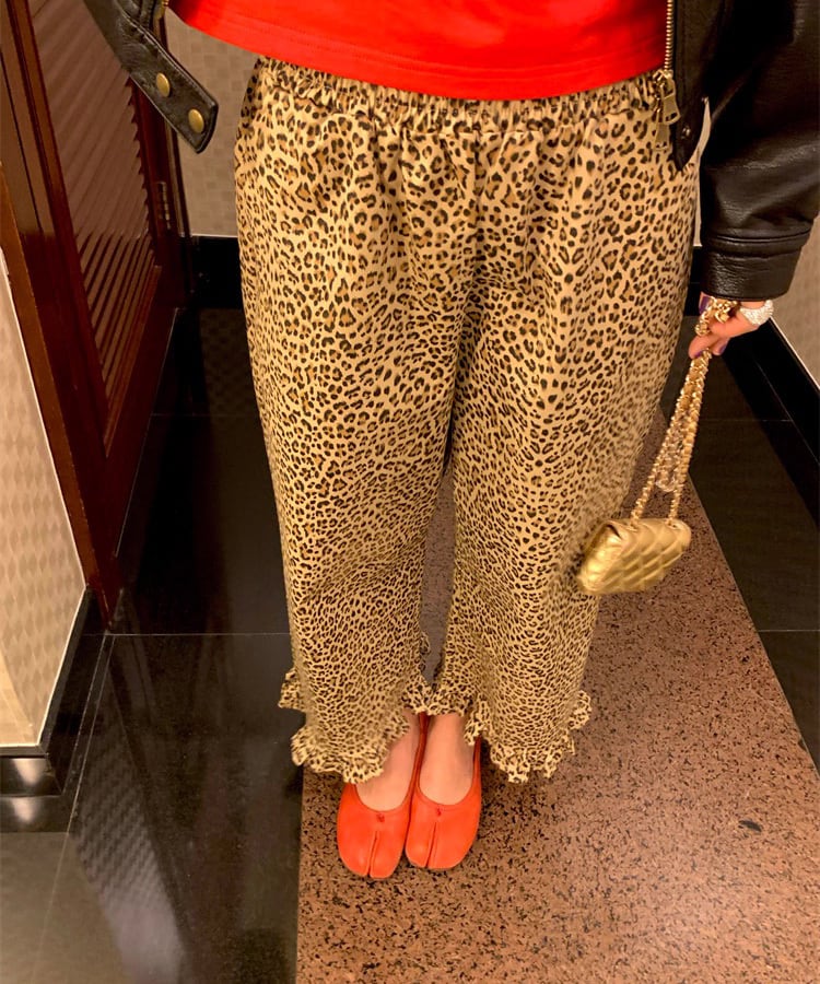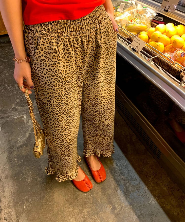 レオパード柄にフリルの裾デザインをプラスした、遊び心のあるパンツ。