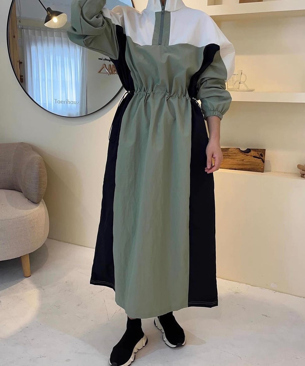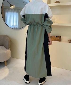 ハーフジップレトロカラー配色ワンピース Q0172