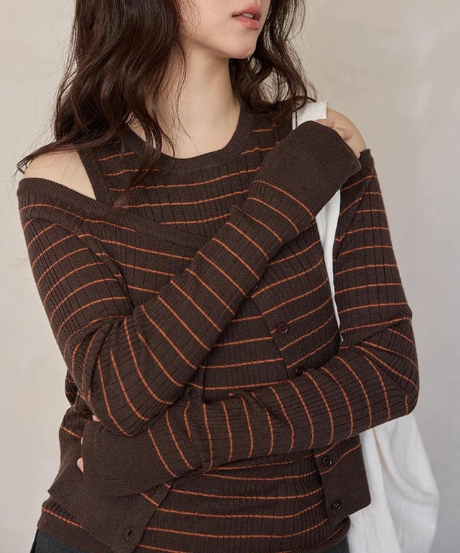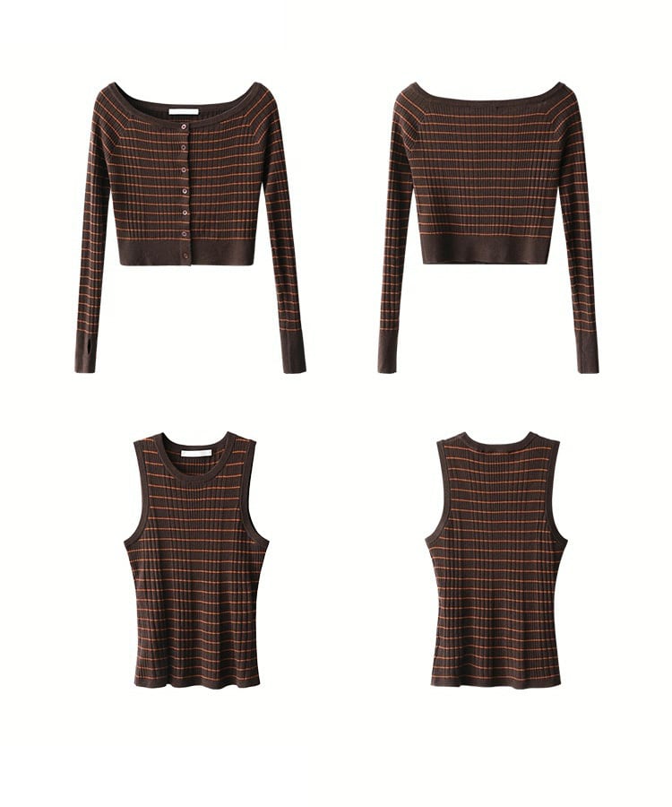【2点セット】ボーダータンクトップ+カーディガン Q0251