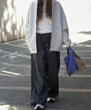 フラワーモチーフがちりばめられた華やかなパンツ。カジュアルな素材感ながら、フェミニンな雰囲気を演出。シンプルなトップスに合わせるだけで、コーデが格上げされます。