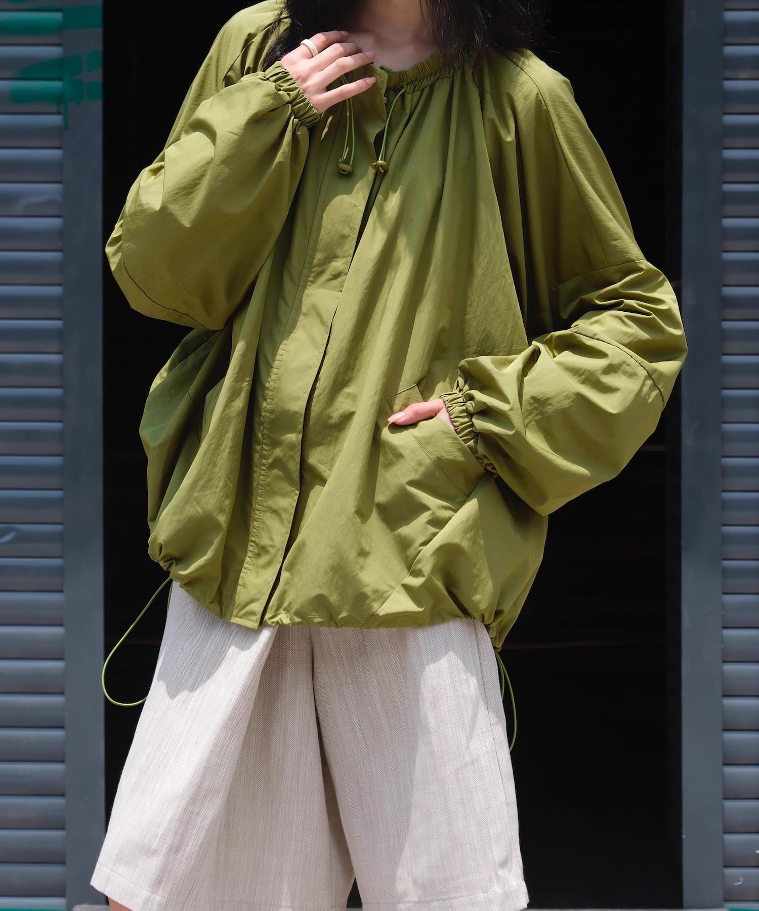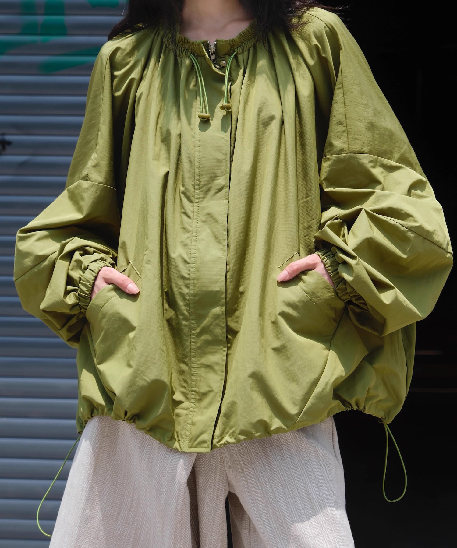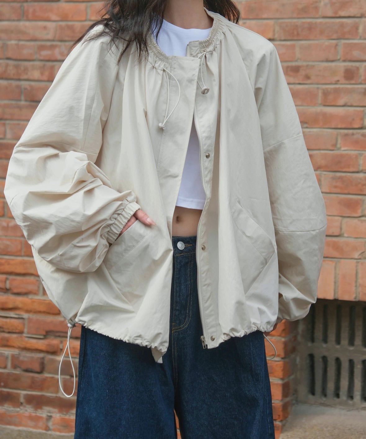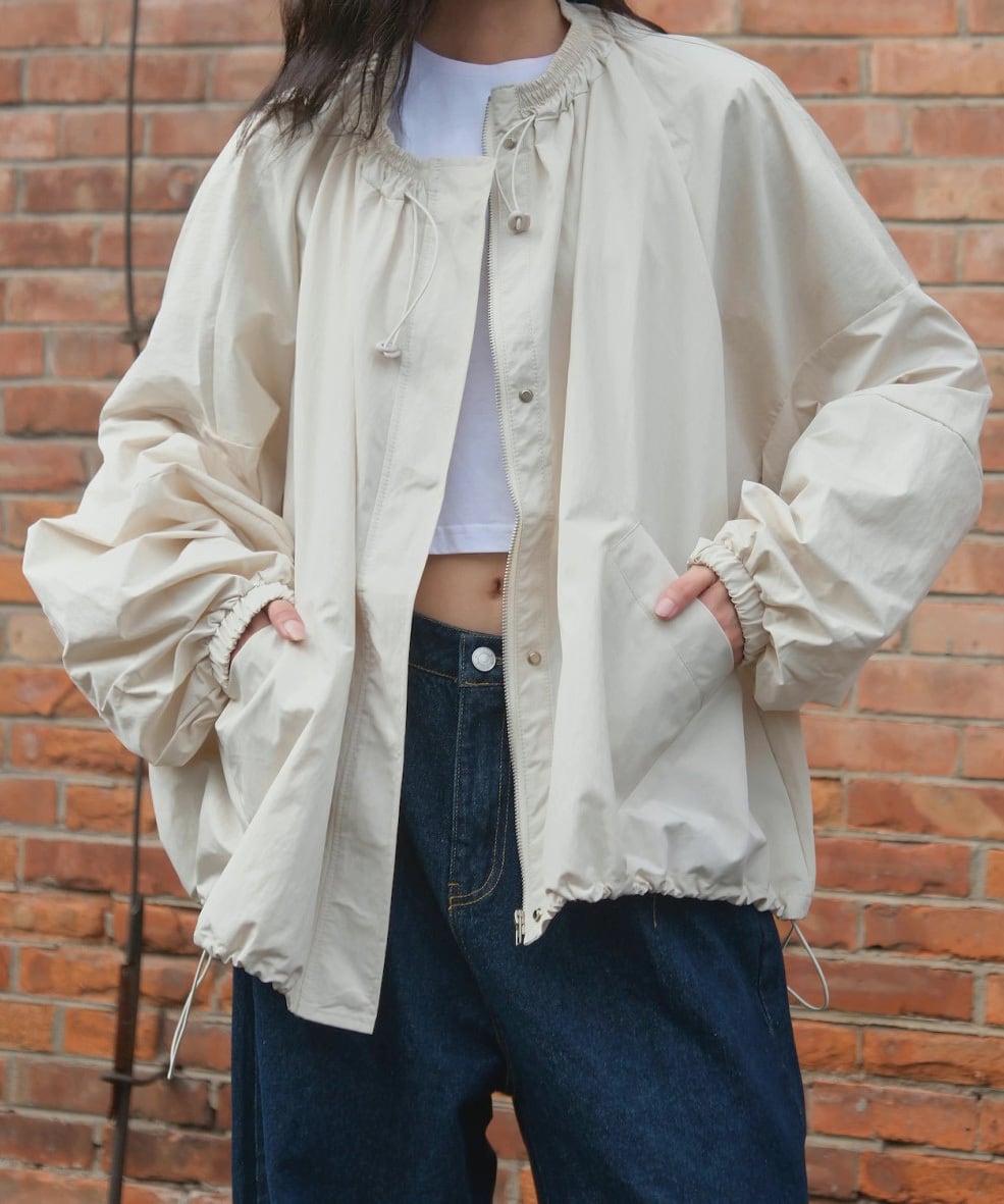 ルーズジッパーラウンドネックジャケット Q0277