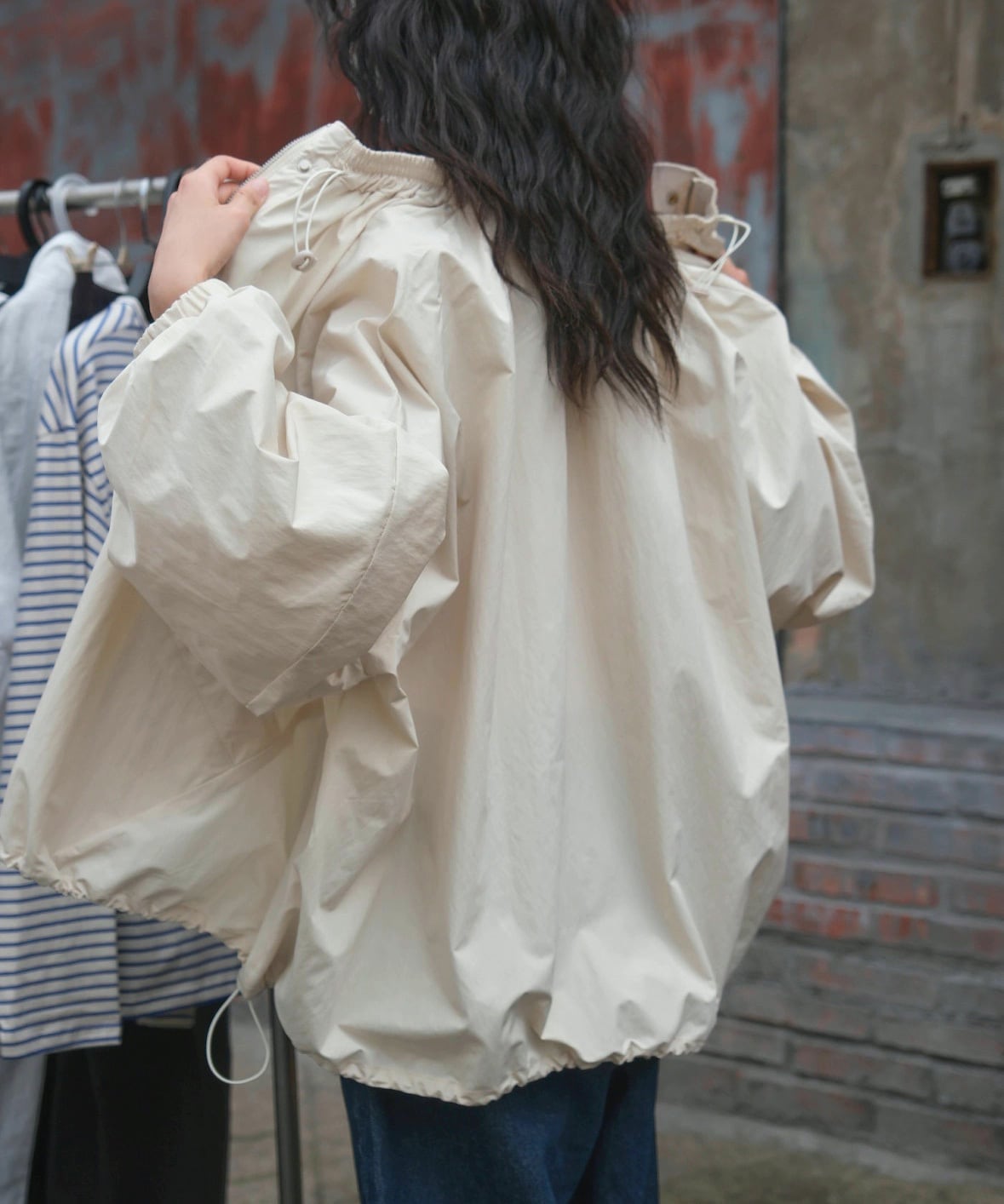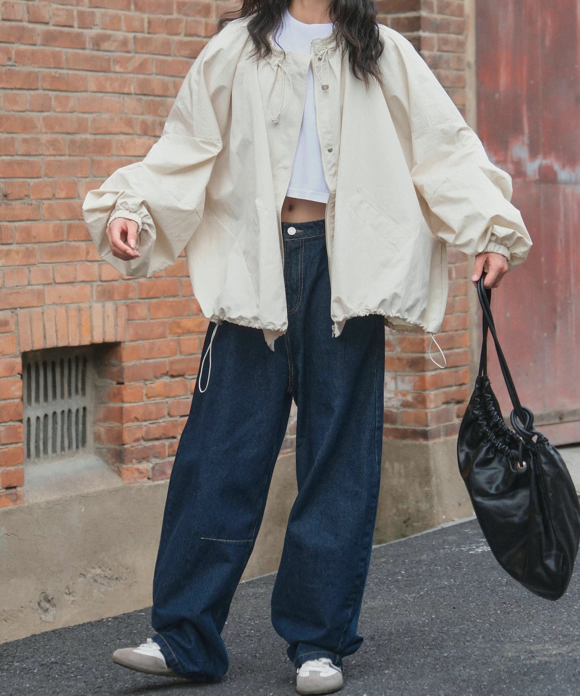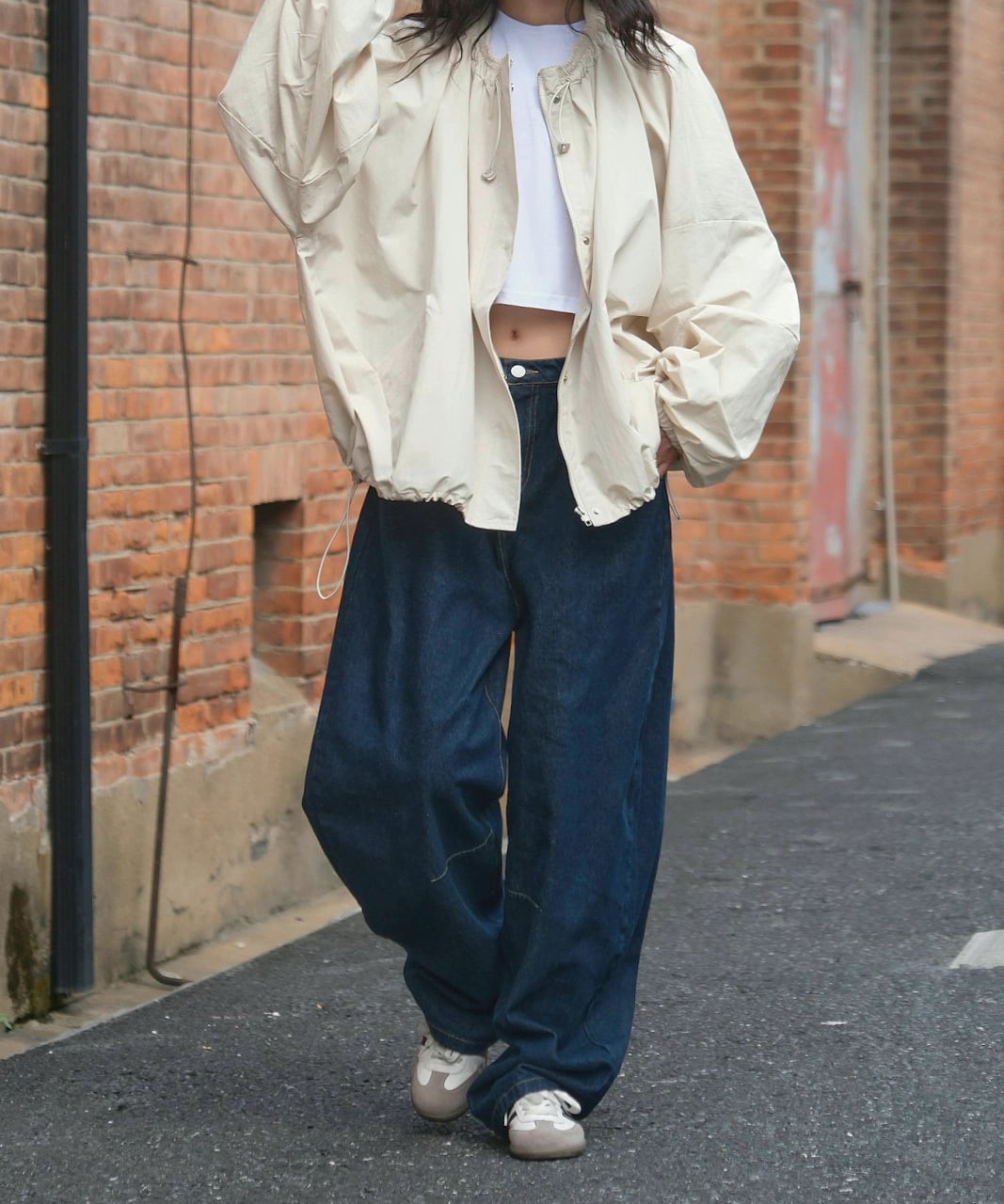 ルーズジッパーラウンドネックジャケット Q0277