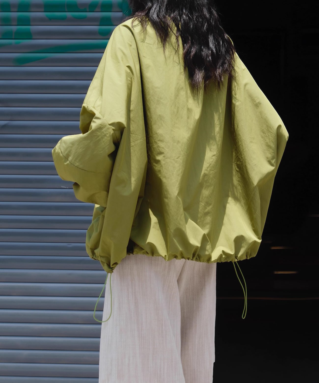 シンプルながらジッパーディテールがアクセントのラウンドネックジャケット。