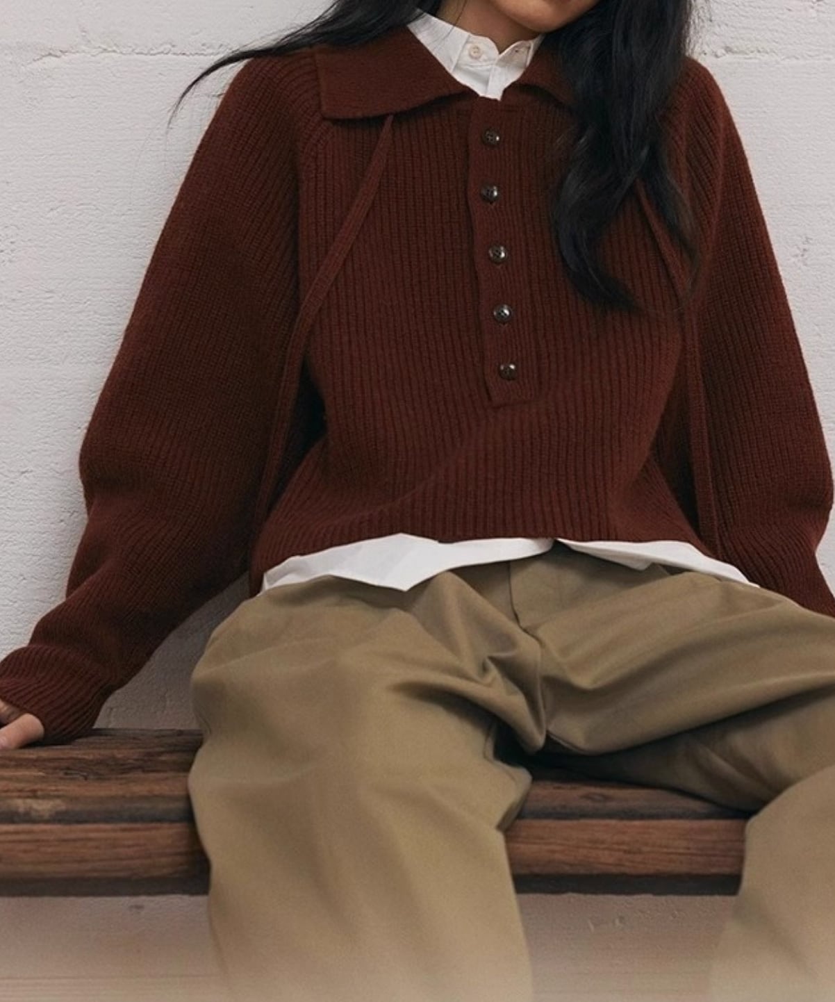 襟付きのポロデザインで上品カジュアルに仕上げたニットトップス。