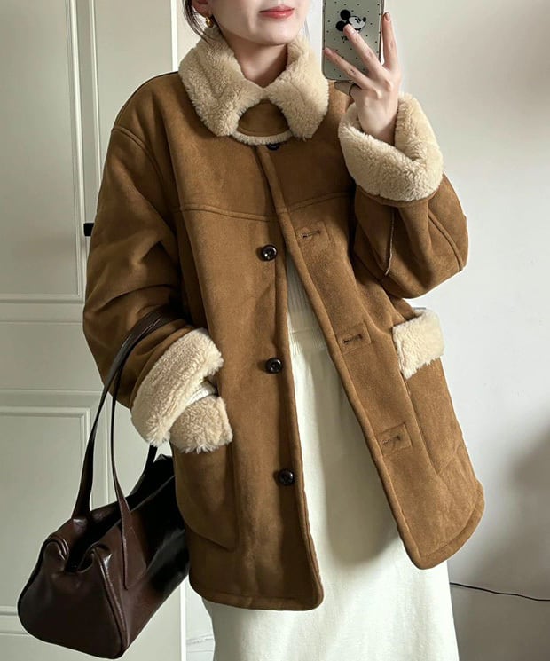 ふわりと包み込むようなボリューム感が魅力のリバーシブルボアコート。リバーシブル仕様で、その日の気分やコーデに合わせて2通りの表情を楽しめます。軽くて暖かく、冬のおでかけもスタイリッシュに✨