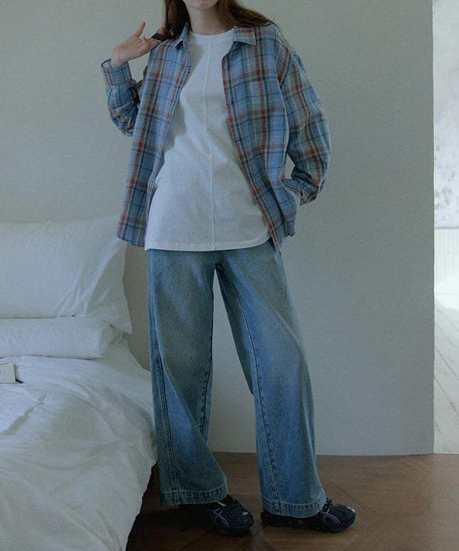 クラシカルなチェックにゆるっと感をプラス。羽織りとしても使える万能アイテムで、秋のレイヤードスタイルにぴったり。