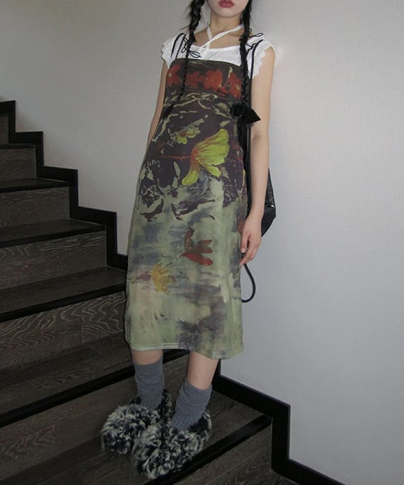 落ち着いたトーンのフラワープリントが印象的なキャミワンピ。シアートップスやニットと重ねても上品。デニムスタイルのレイヤードにも◎しなやかに揺れる素材感が、秋の空気にぴったりです。