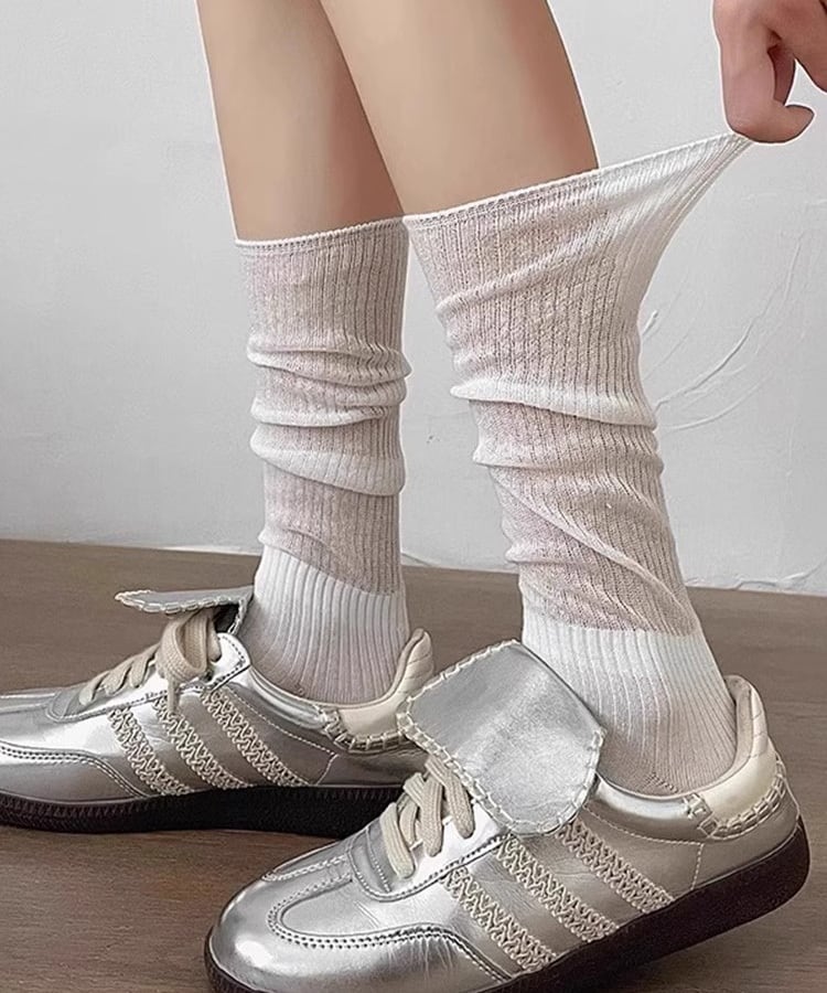 透け感のあるシアー素材にリブ編みを施したソックス。