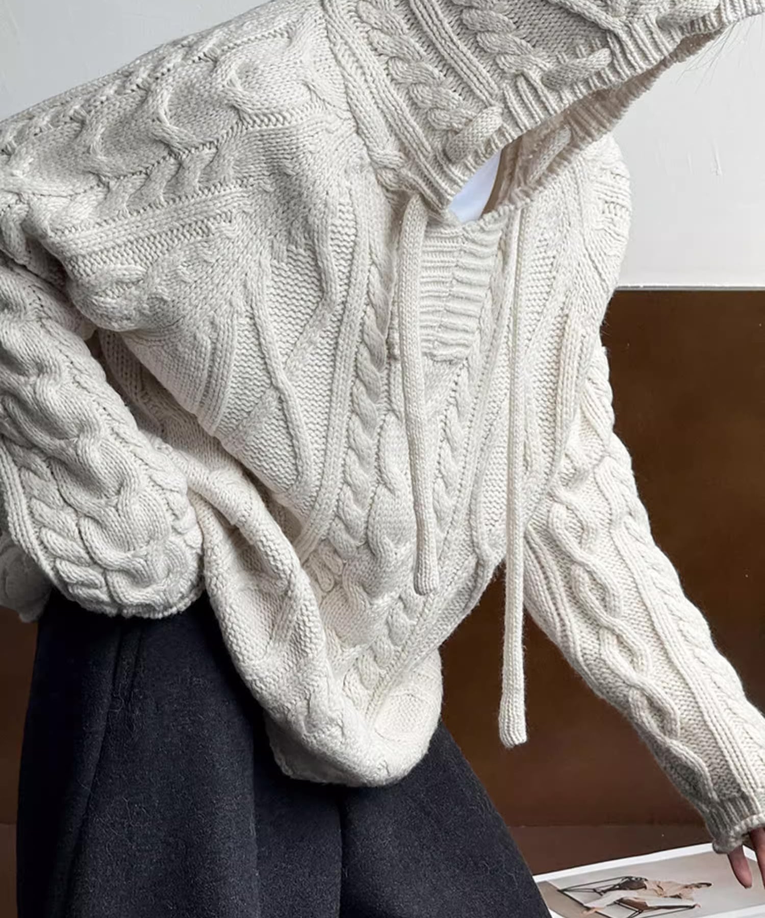 立体感のあるケーブル編みが上品な印象のスキッパーニット。