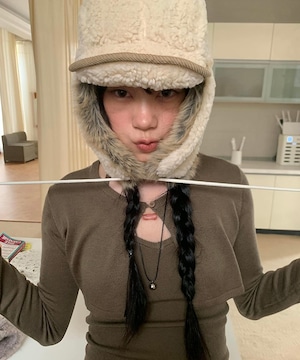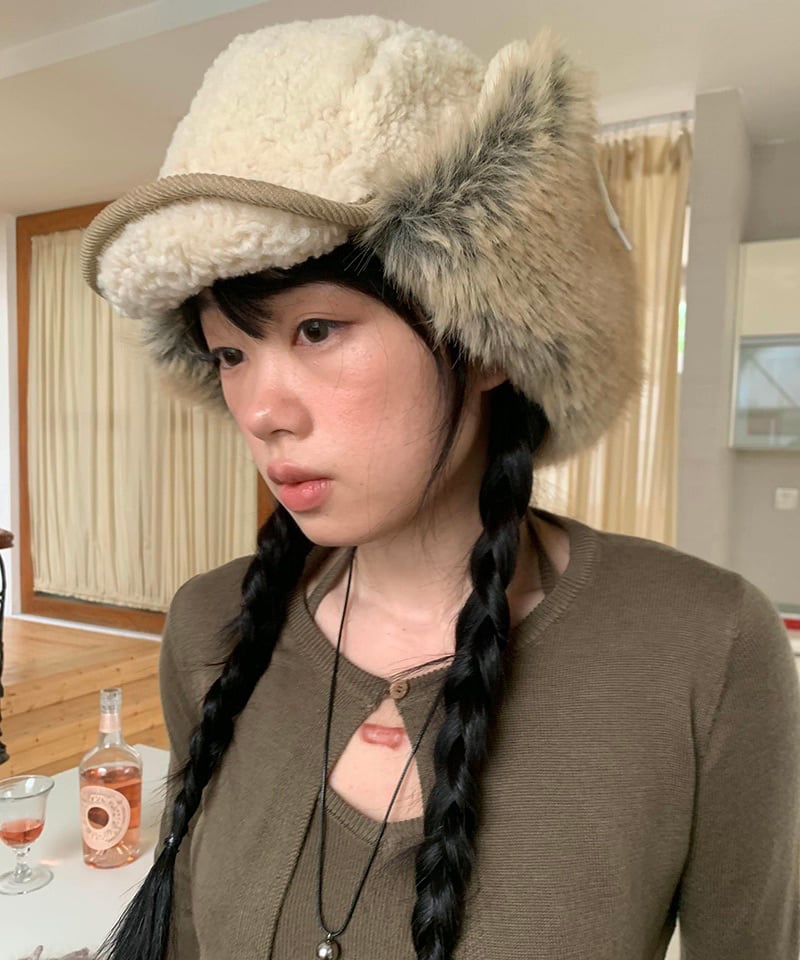 異素材ミックスが魅力の2トーンデザイン。ふわふわのボアと柔らかいファーの組み合わせが、シーズンムードを高めます。ストリートにもモードにも馴染む個性派ハット。
