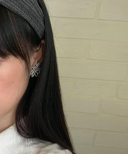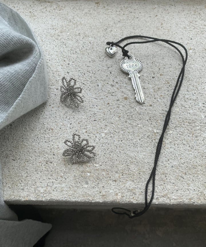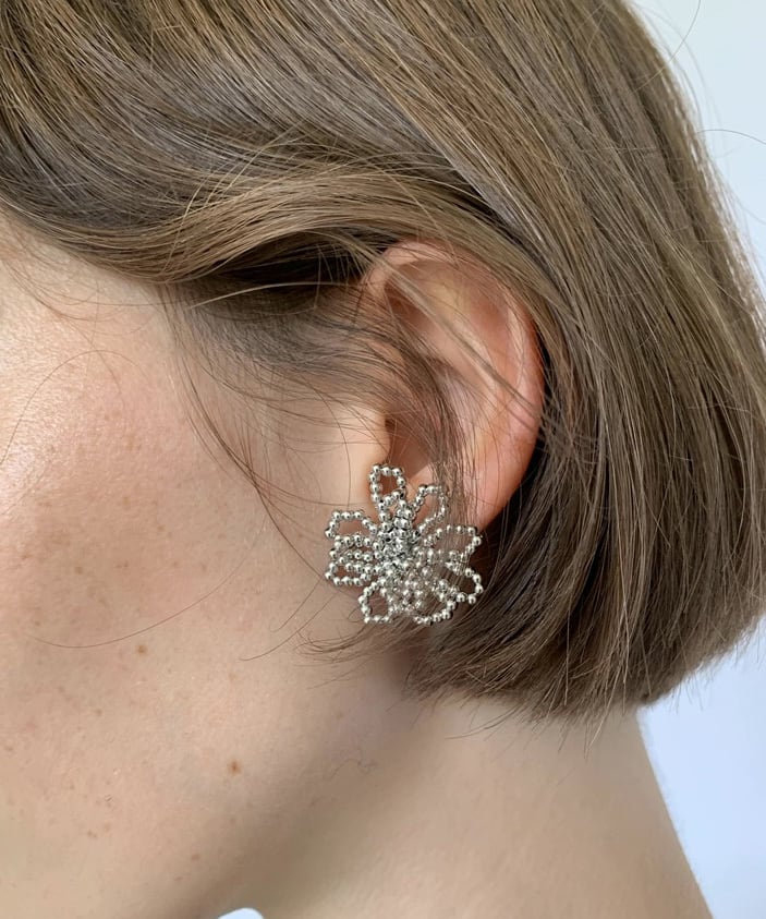 繊細なシルバービーズで花のモチーフをあしらったアクセサリー。