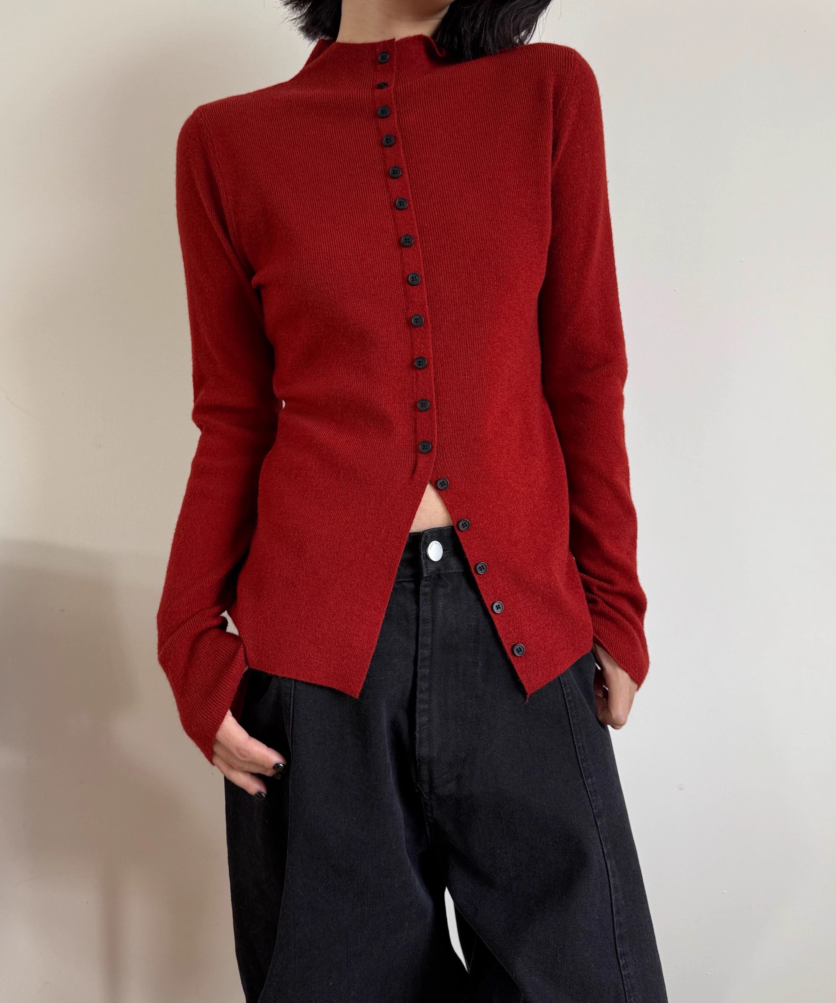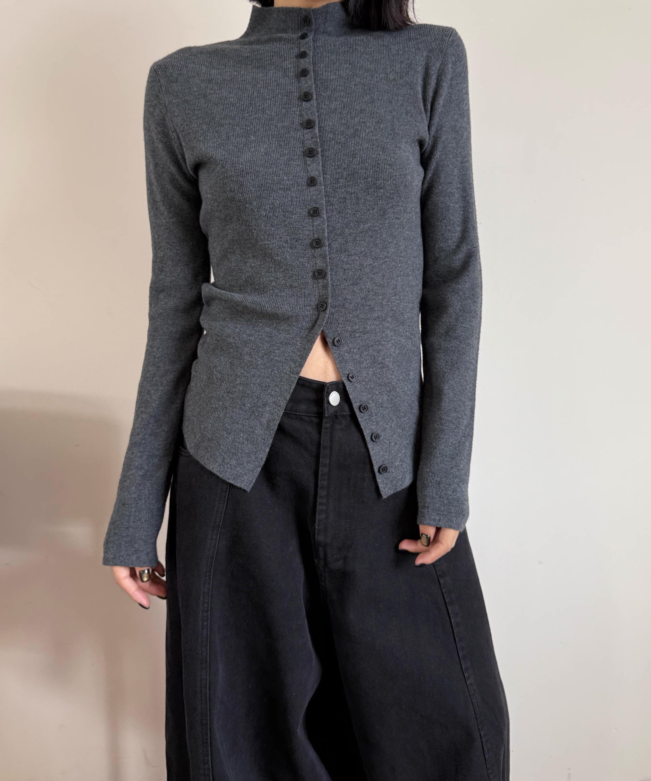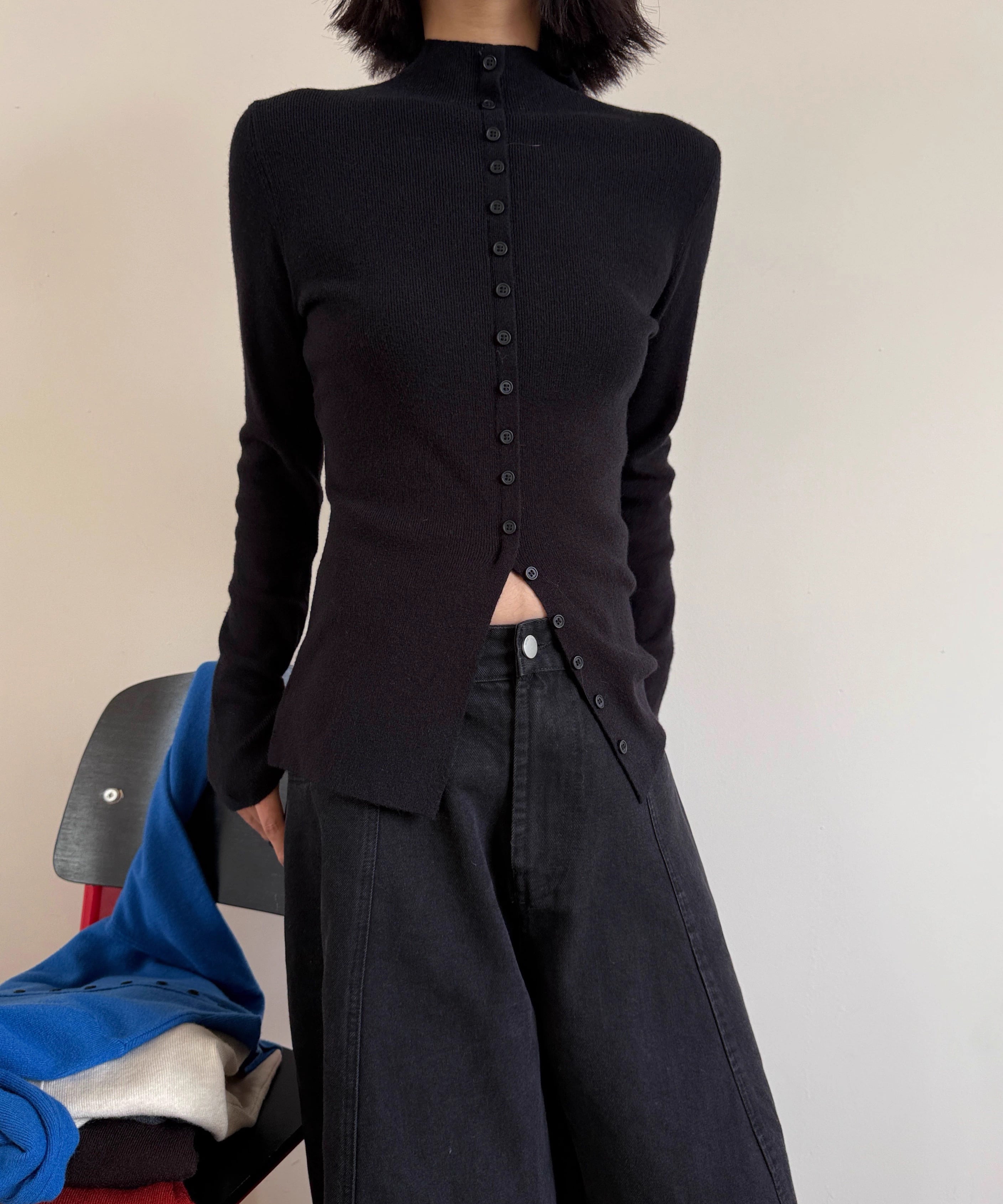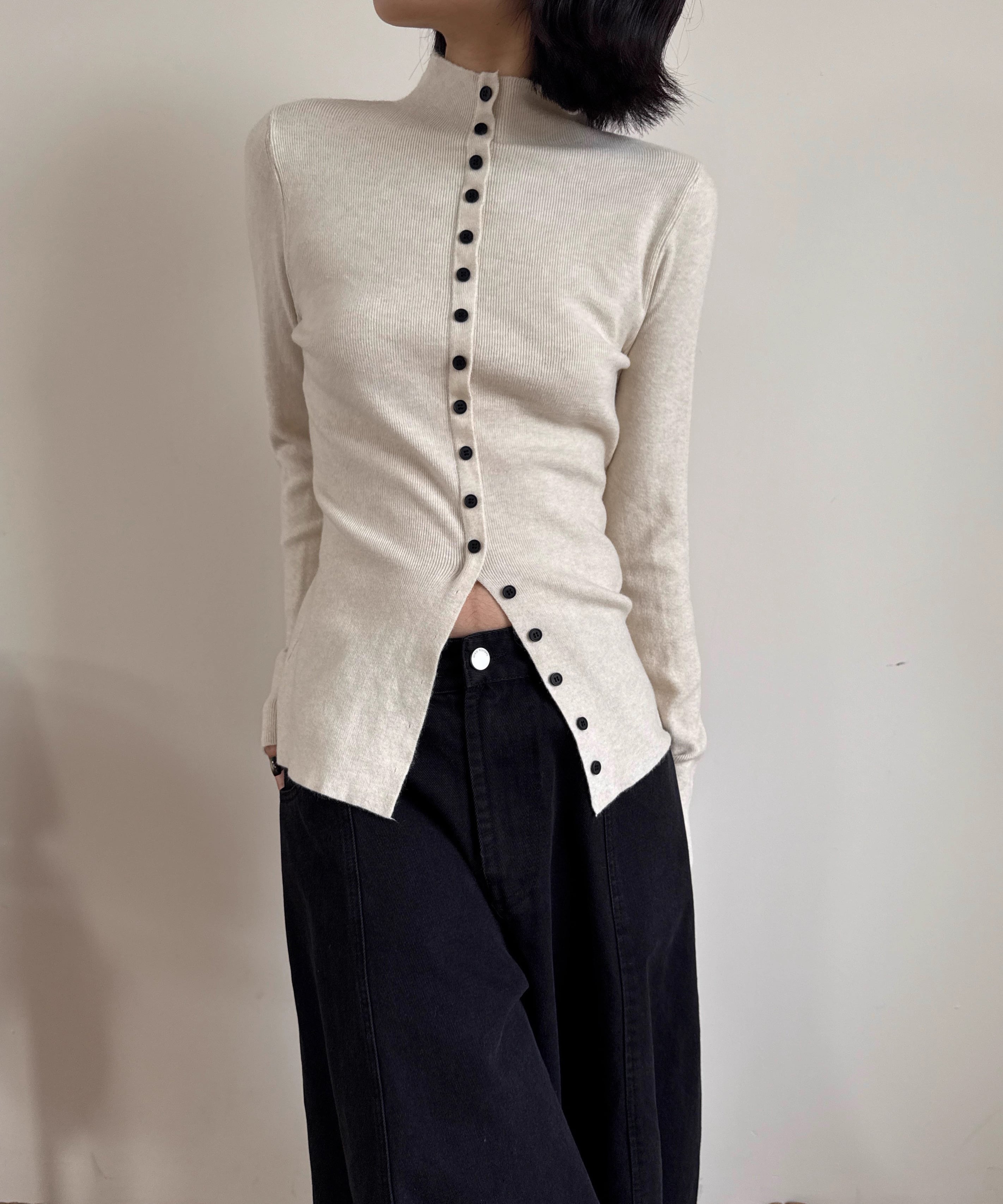 フロントスリットタートルネックニット Q0349