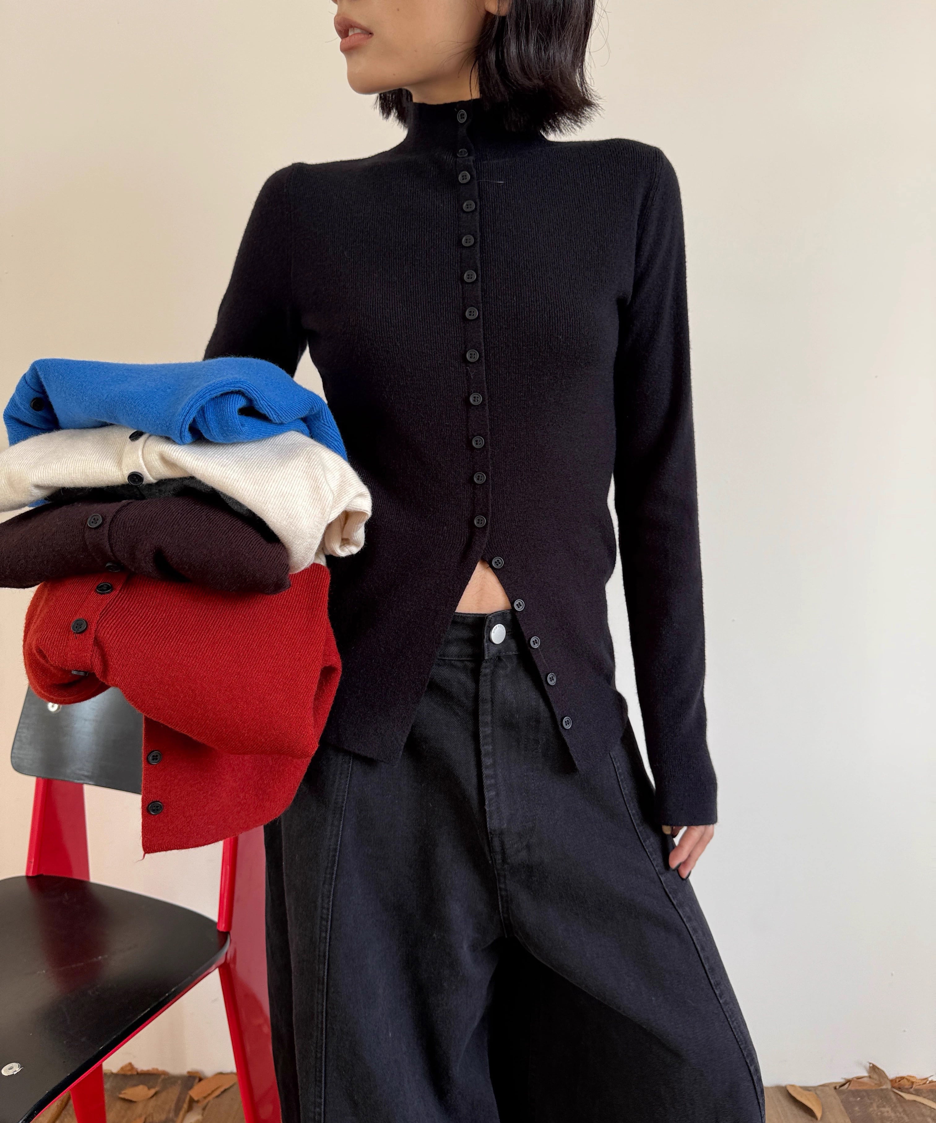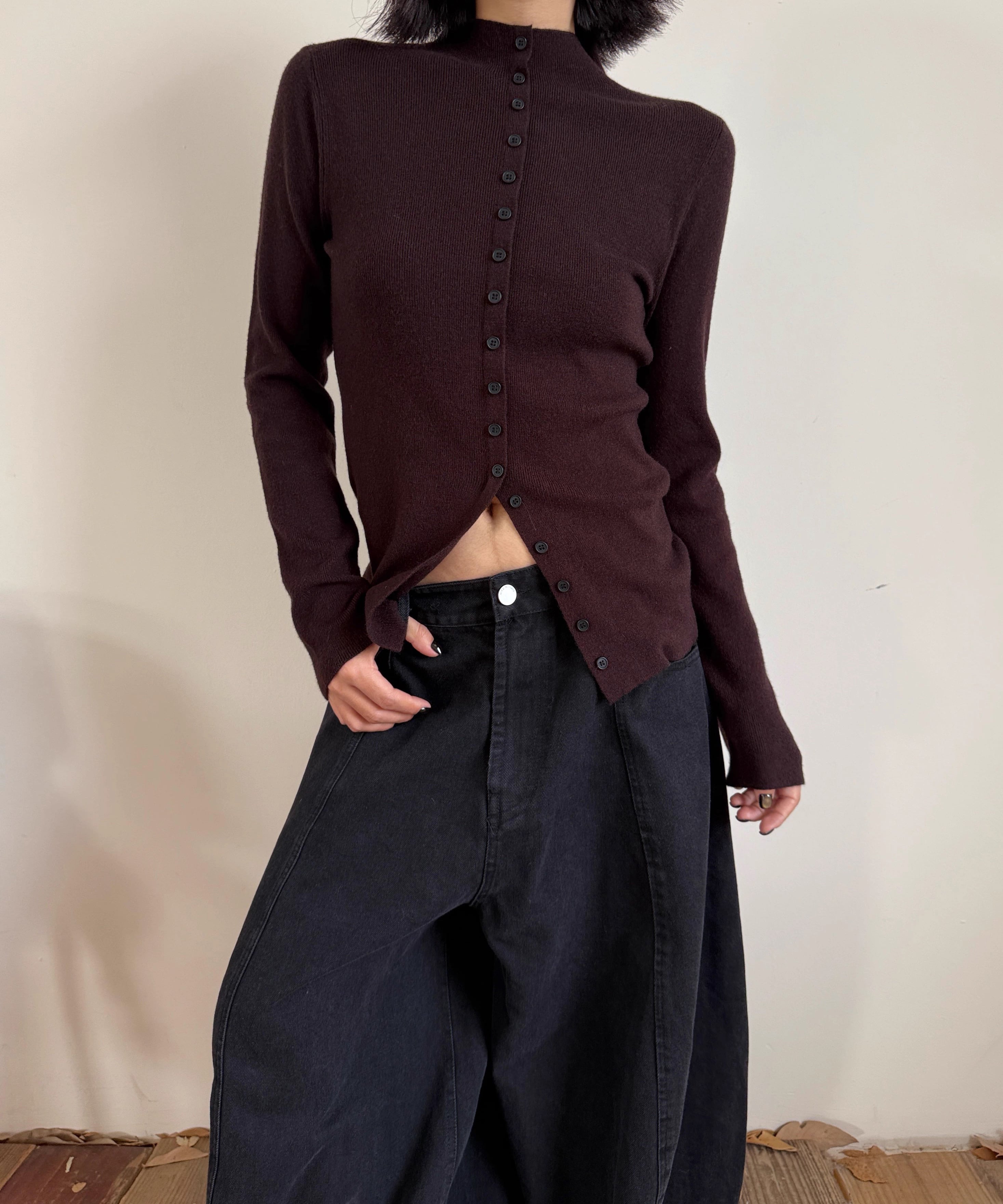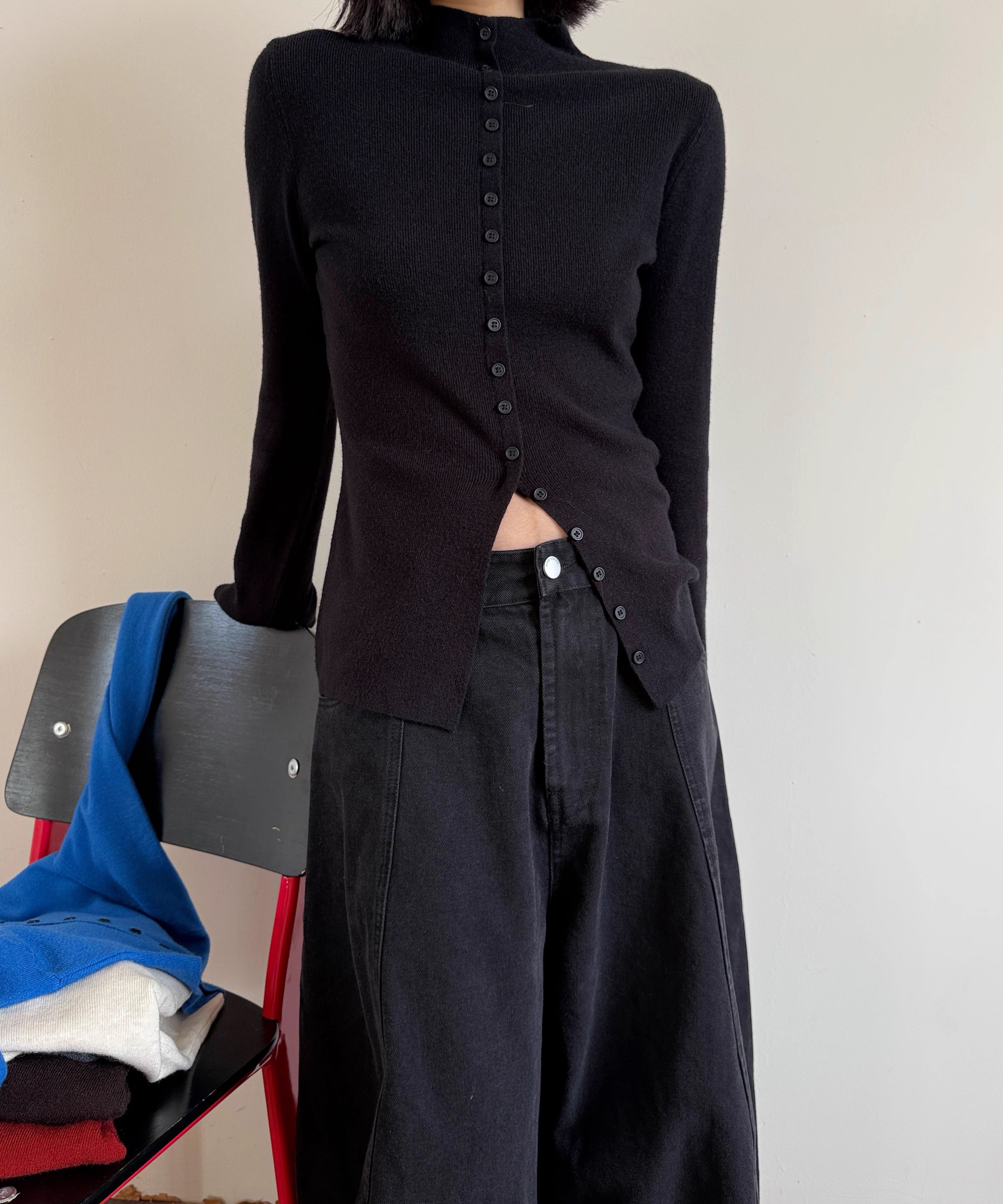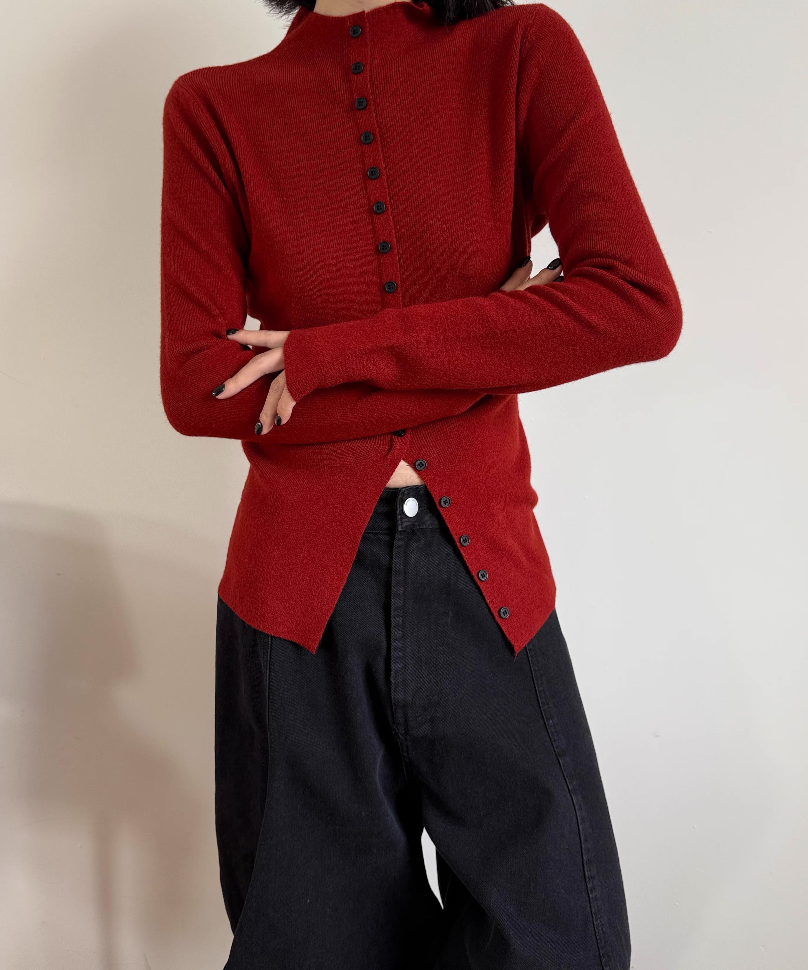 フロントスリットタートルネックニット Q0349