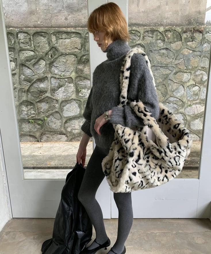 ふわふわのフェイクファー素材を使用した、存在感たっぷりのレオパード柄ビッグバッグ。