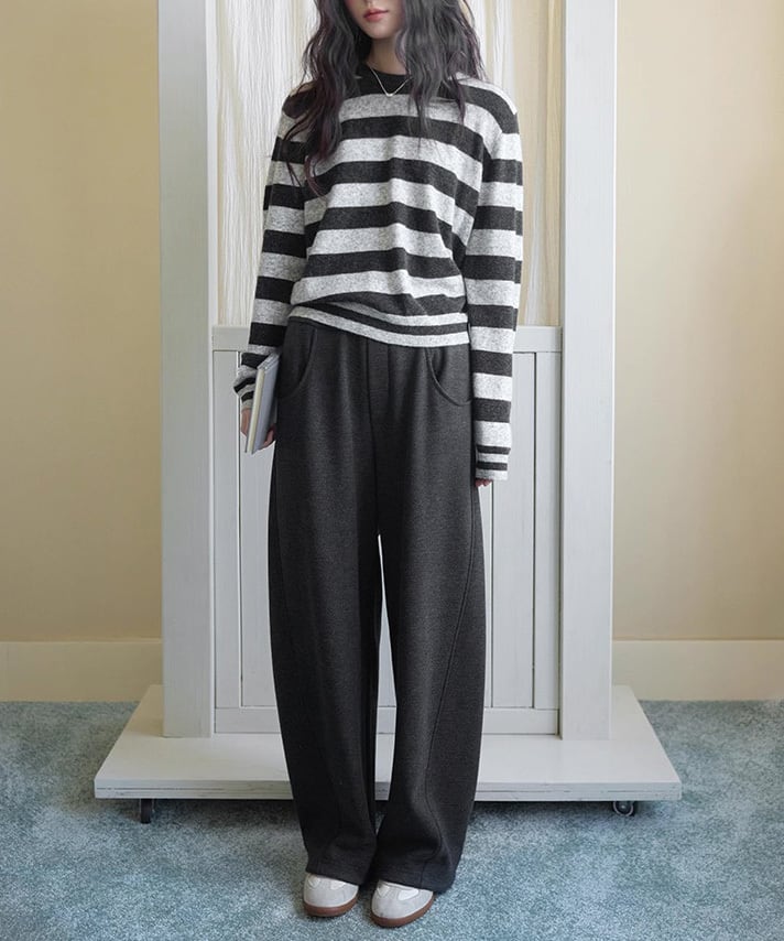見た目はすっきり綺麗め、穿くとふわっと暖かい裏起毛ウールパンツ。寒い季節でもスタイルを崩さずに過ごせる“頼れる一本”です。ステッチラインが脚をまっすぐ見せてくれ、トップスを選ばず着回し抜群。ウエストはストレスフリーなゴム仕様で、長時間の着用でも快適な履き心地。大人の冬コーデに欠かせない、優秀パンツです。