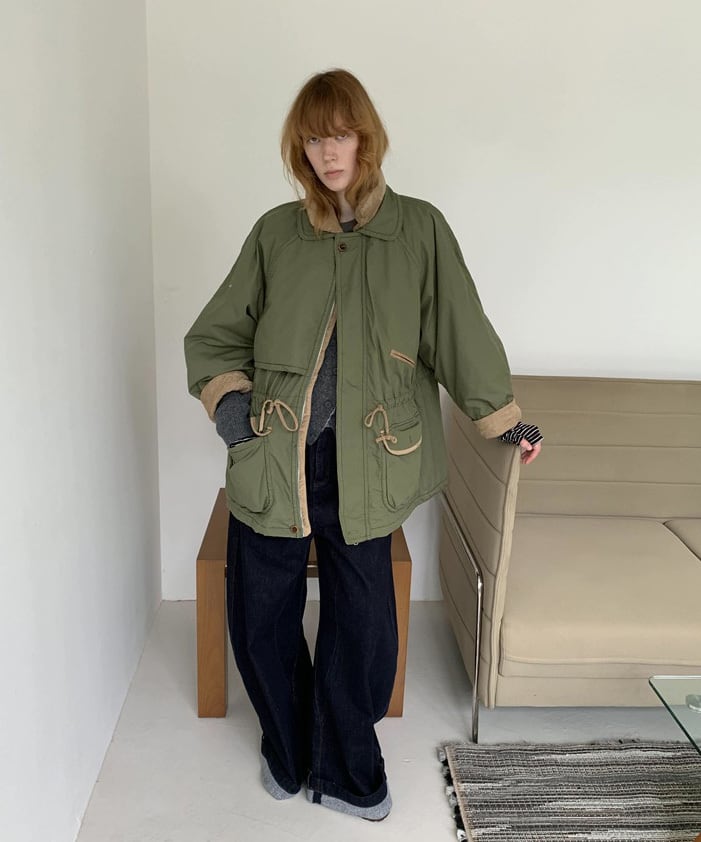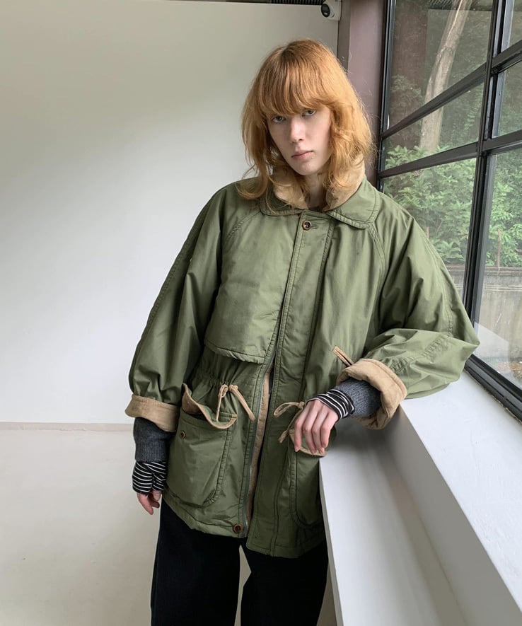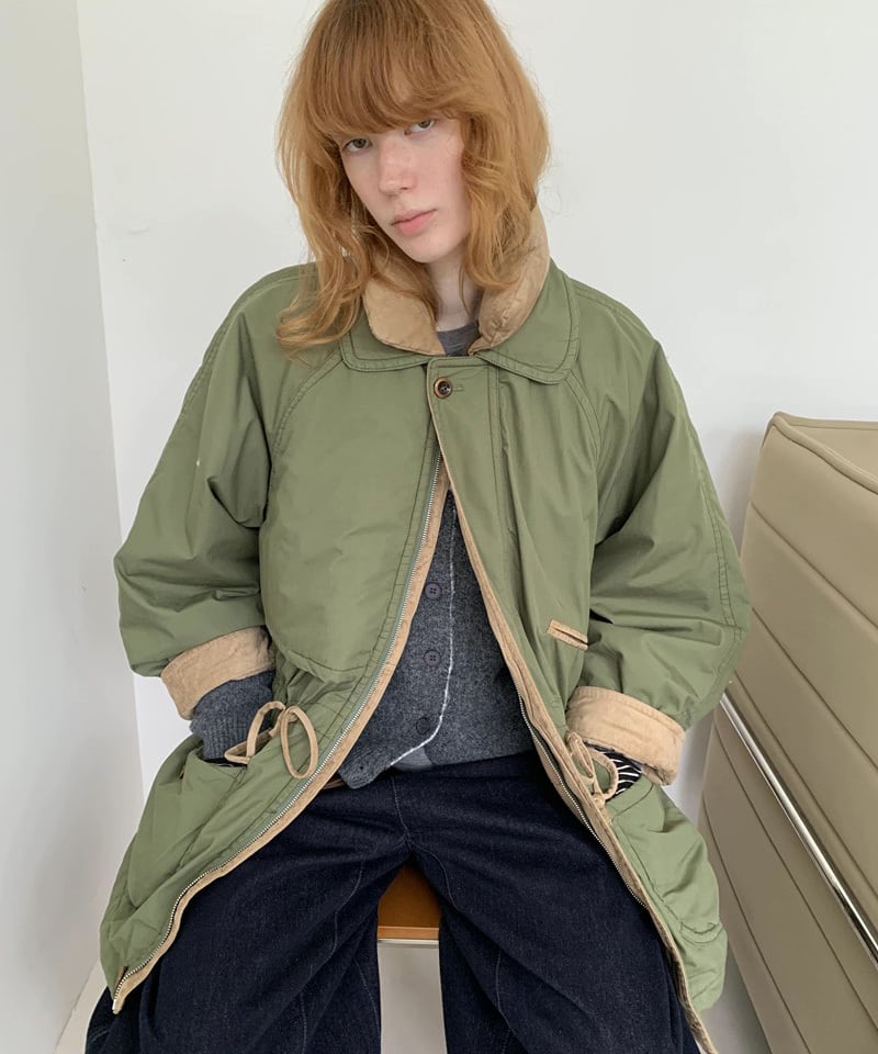ダブルカラーミドル丈中綿ジャケット Q0378