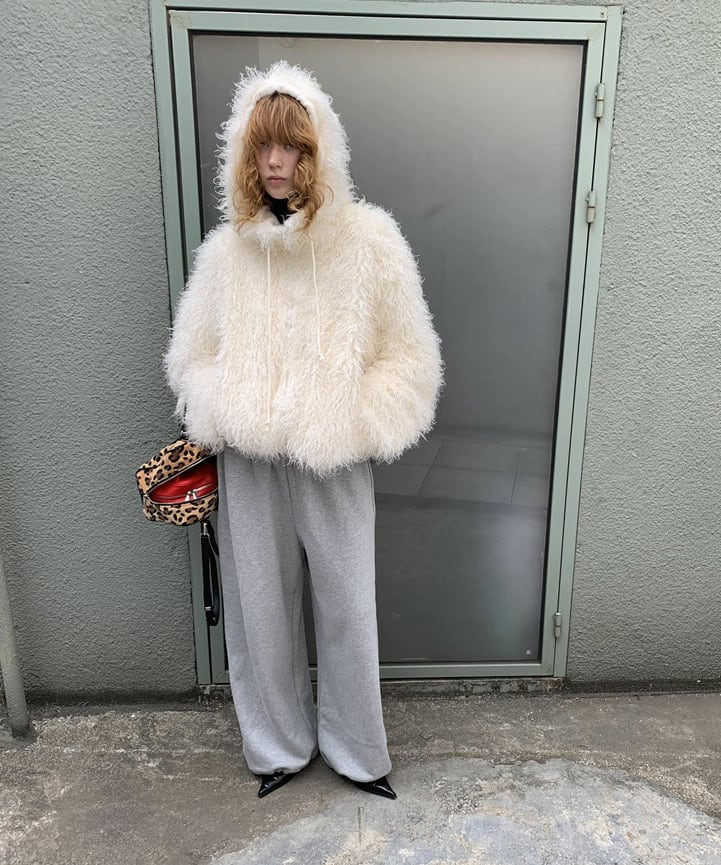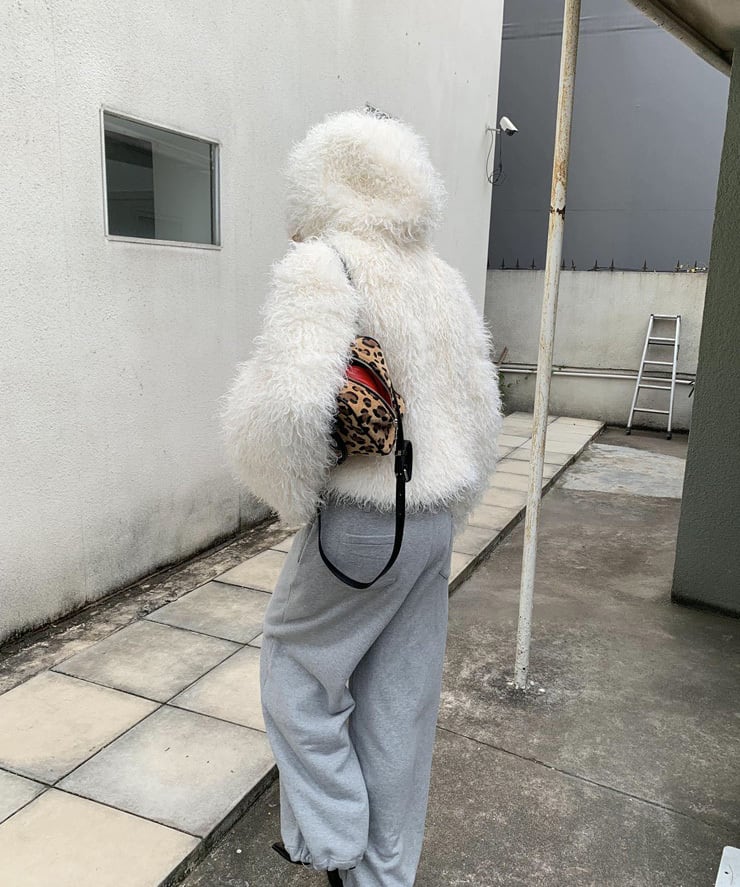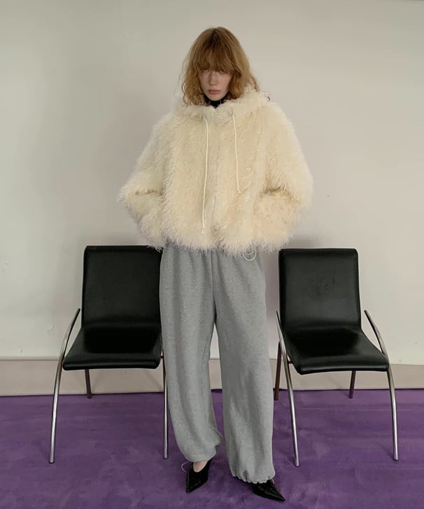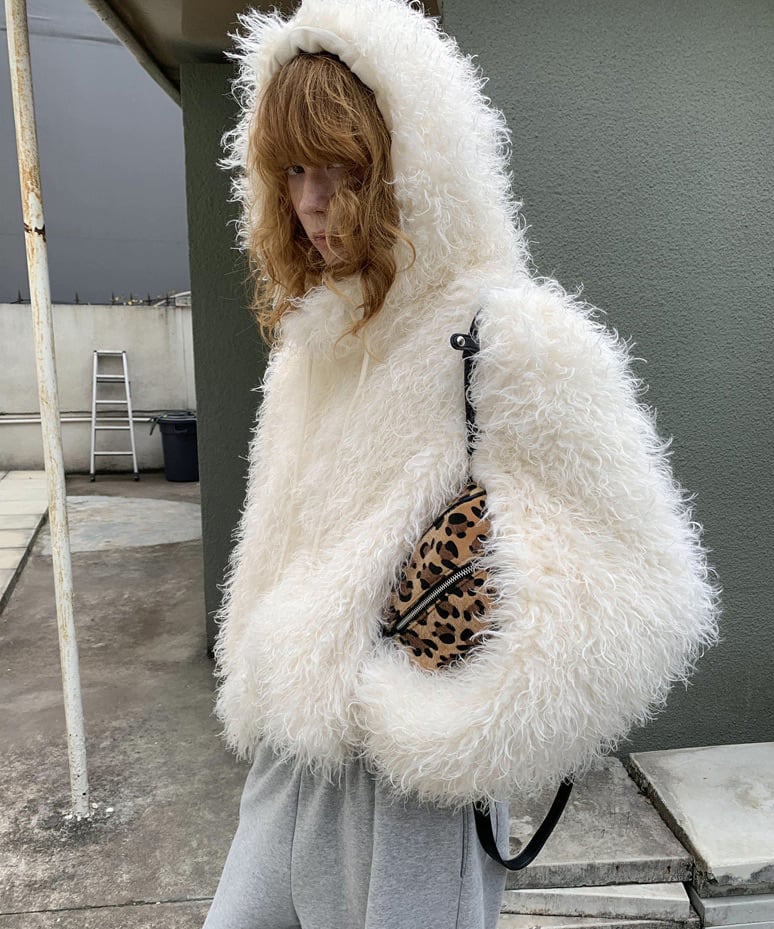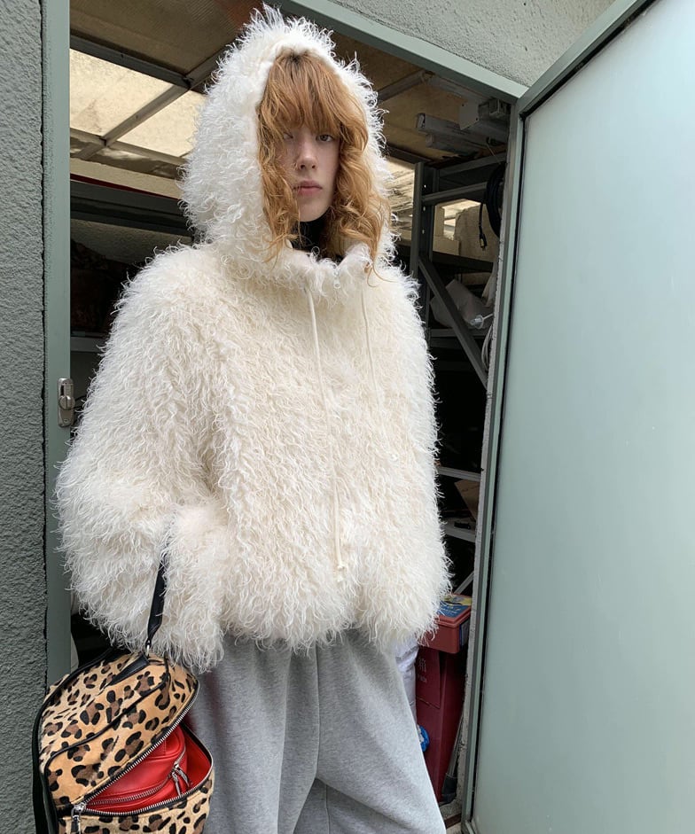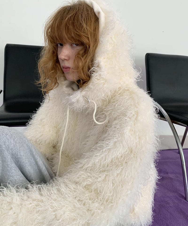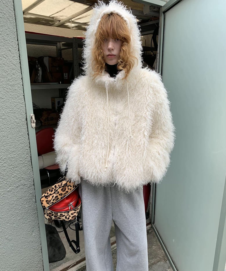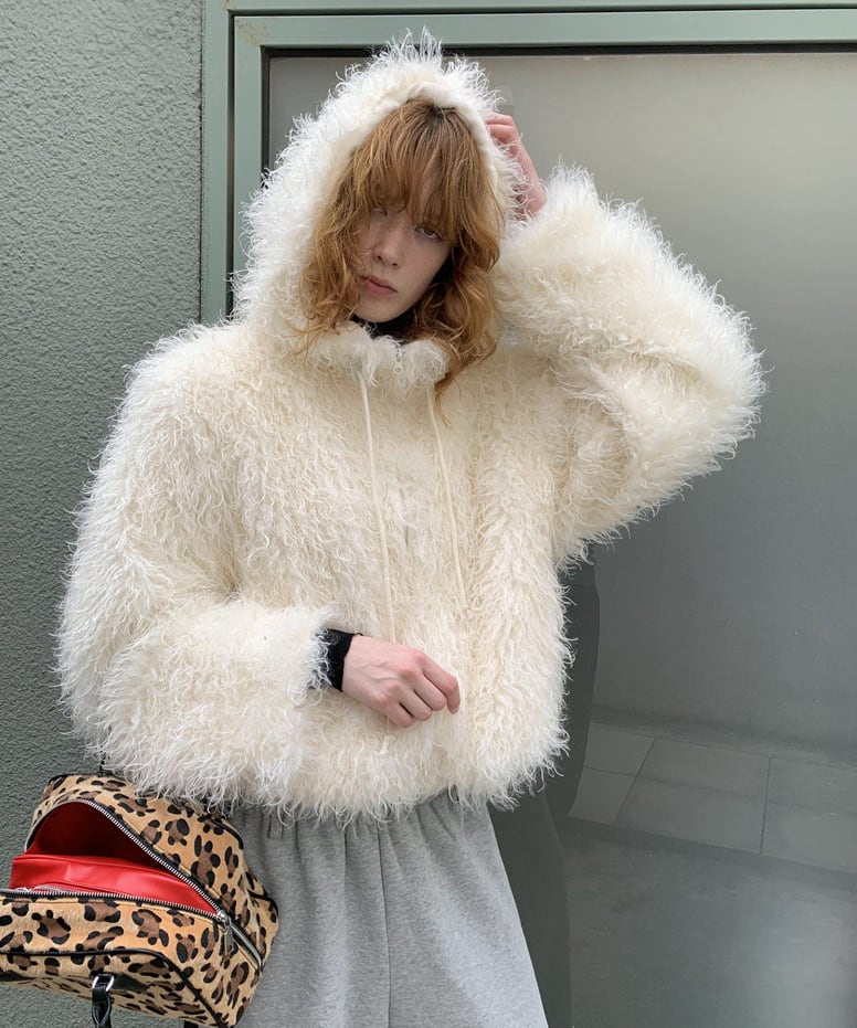 フード付きカーリーシアリングジップコート Q0424
