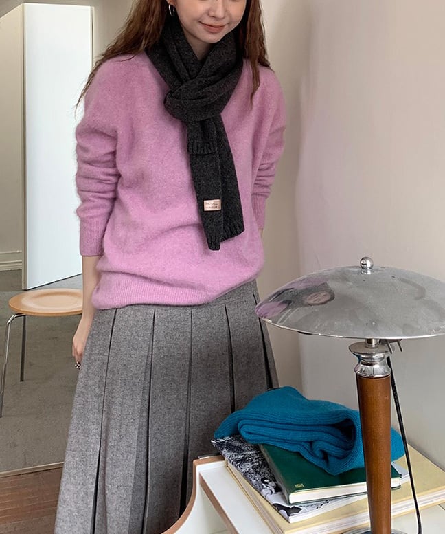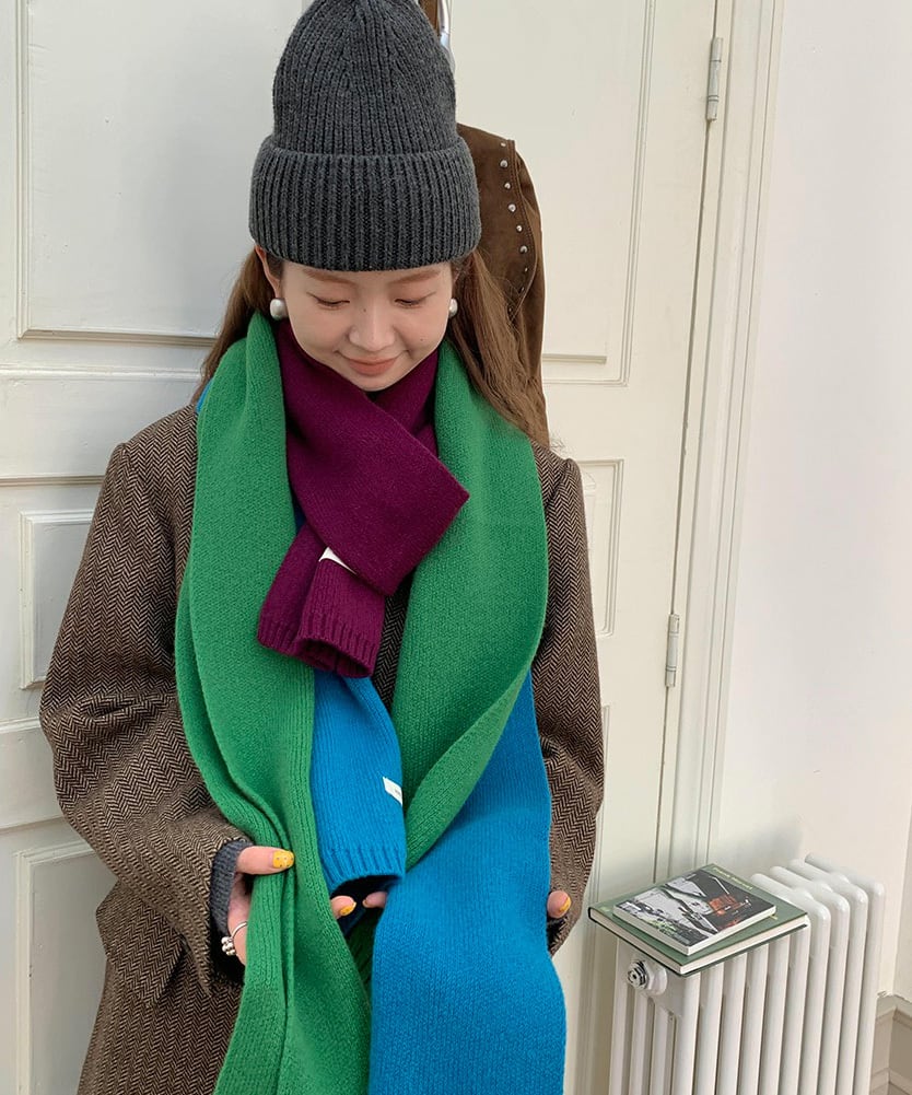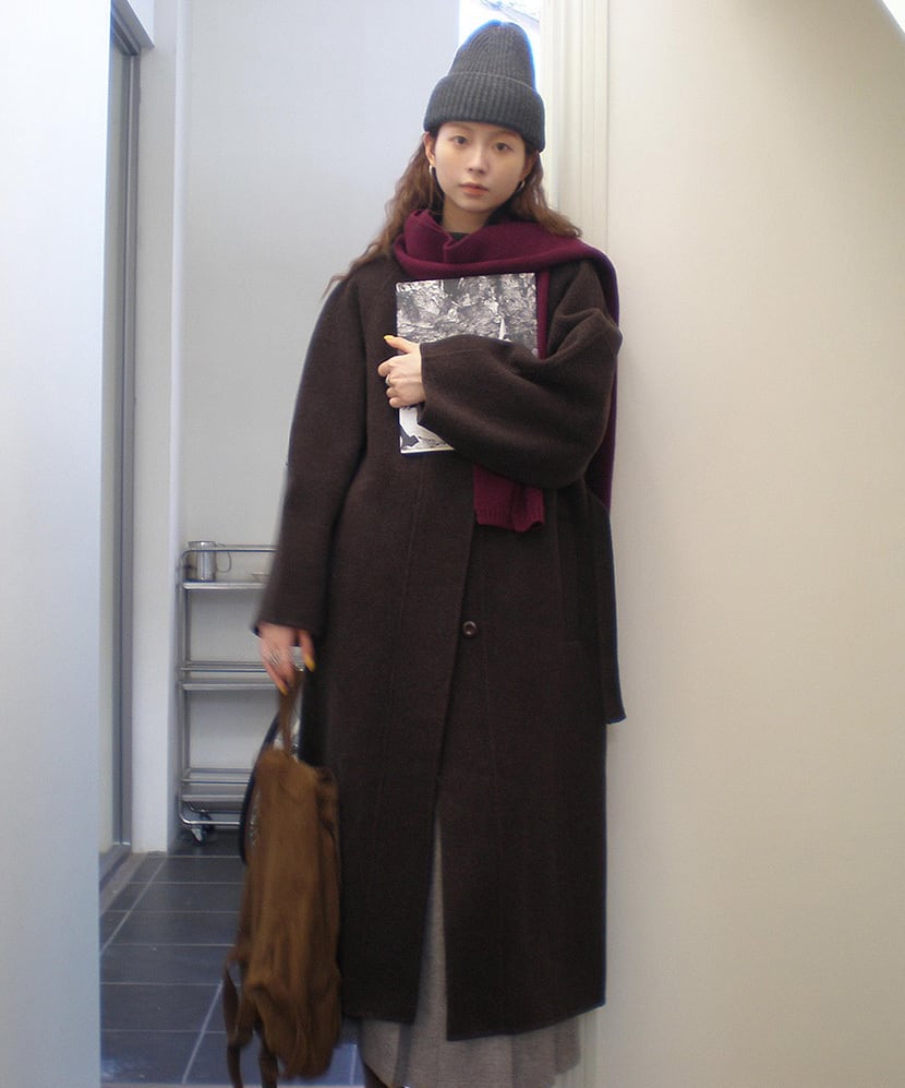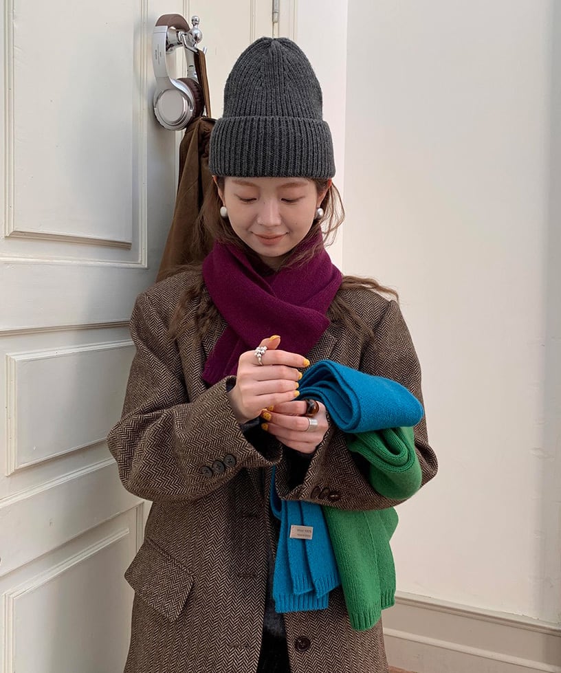 細めで長さのあるシルエットが特徴の、軽やかなニットマフラー。通常のマフラーよりもコンパクトで重たさがなく、肩が凝りにくいのが嬉しいポイント。柔らかなウール素材であたたかく、ひと巻きするだけで上品なニュアンスをプラス。デイリーにも差し色にも使える、使い勝手の良い一本です