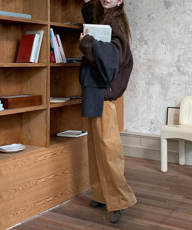 ミッドライズ × ワイドストレートで、裾に向かってほんのり細くなるラインが脚をすっきり見せてくれます。