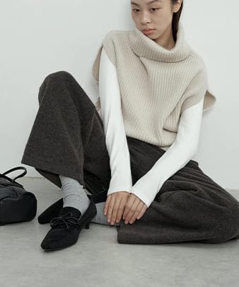 ざっくり編みのチャンキーウールが可愛い、冬レイヤードの主役ベスト。
