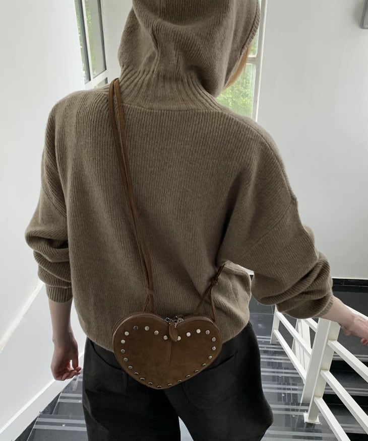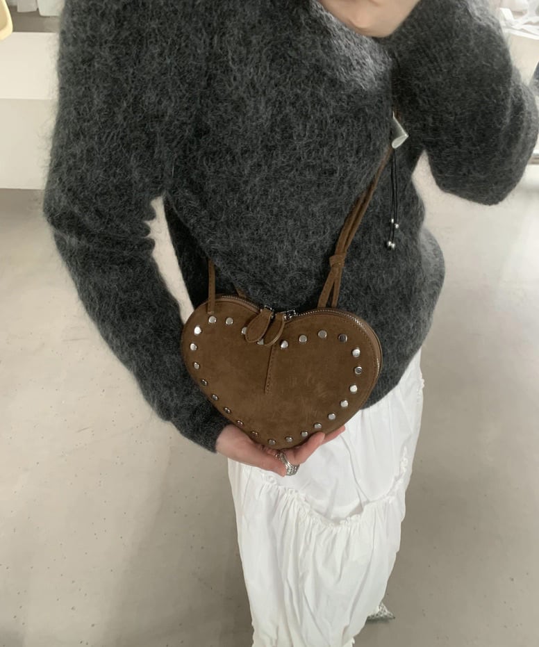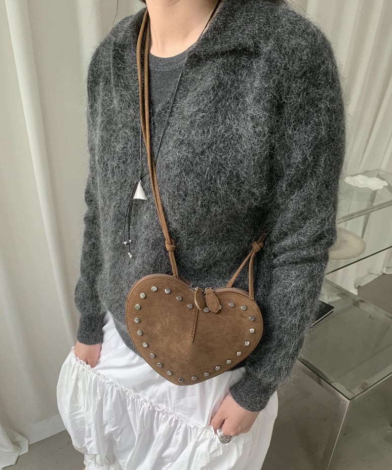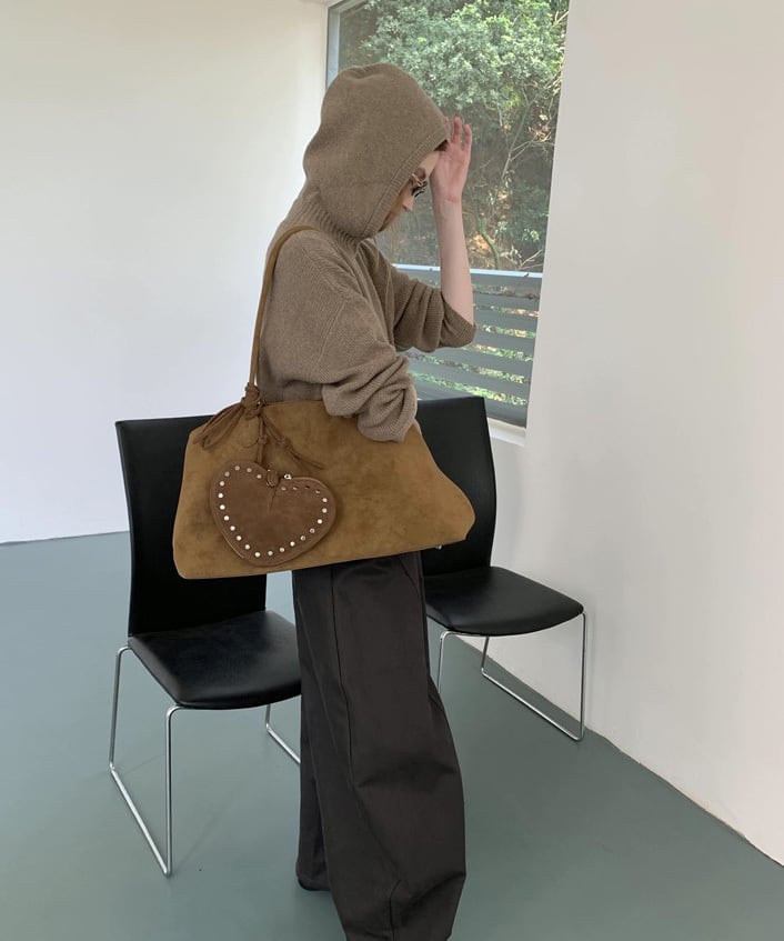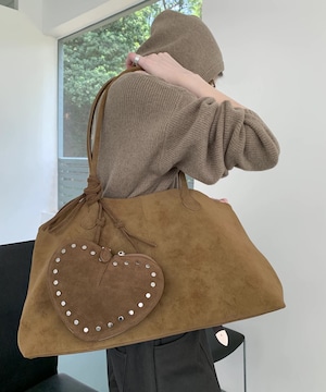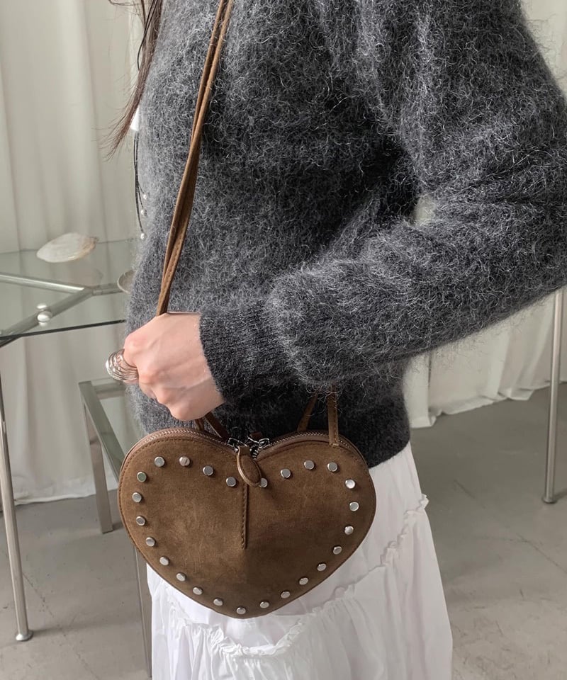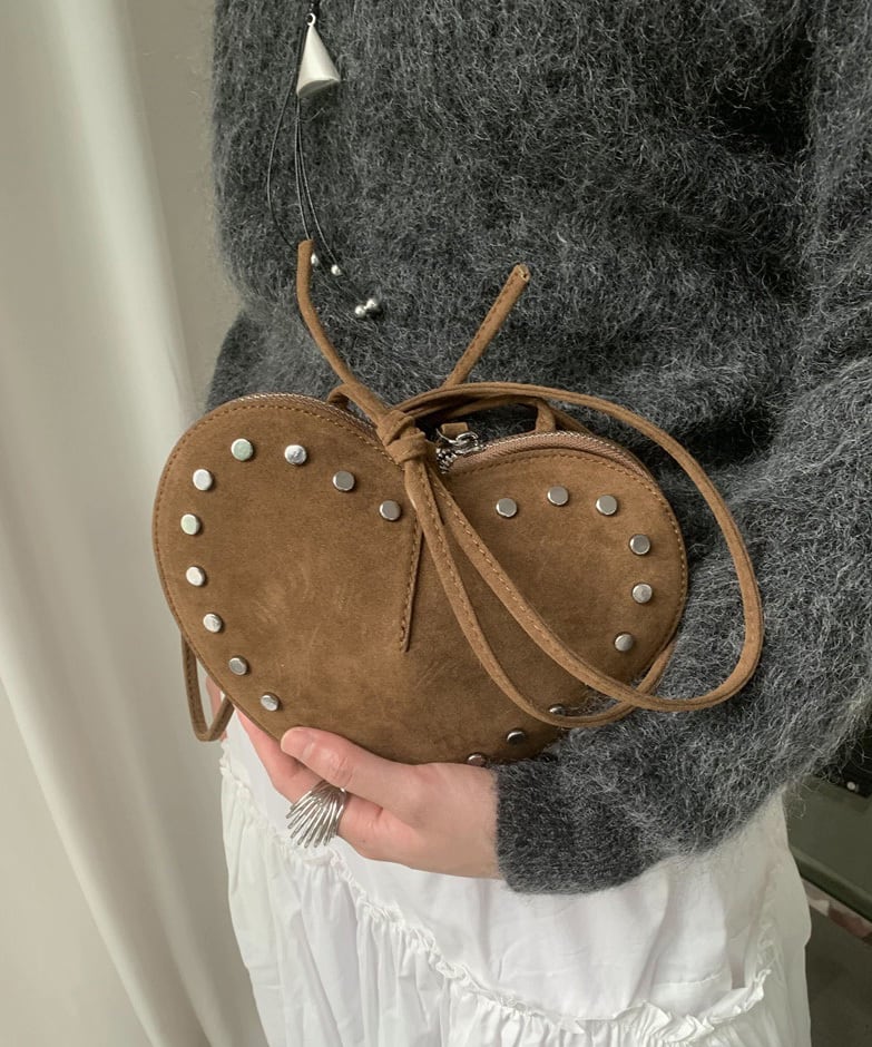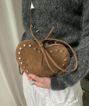 ハートシルエットが可愛らしい、スエード素材のショルダーバッグ。