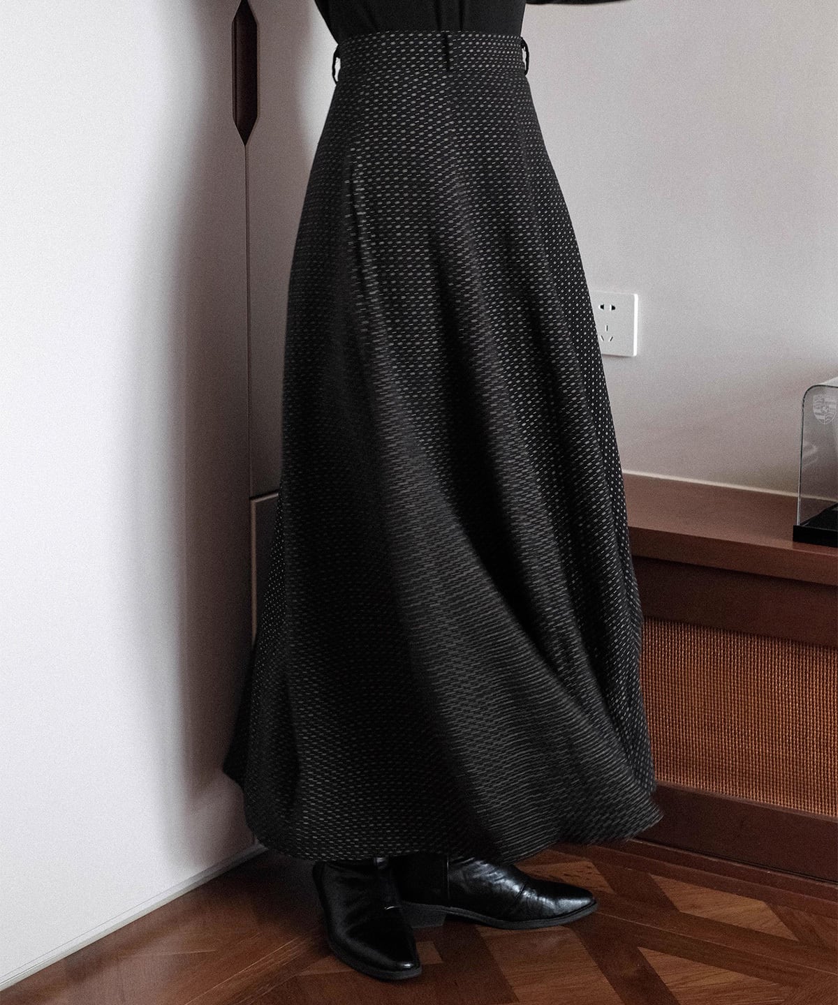 歩くたびにふんわり揺れるシルエットが、上品でやさしい印象に。