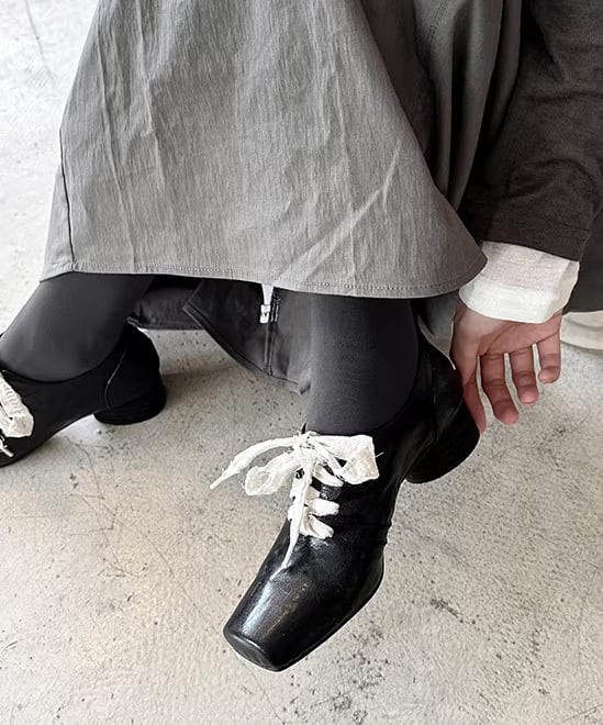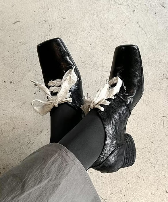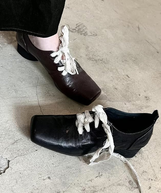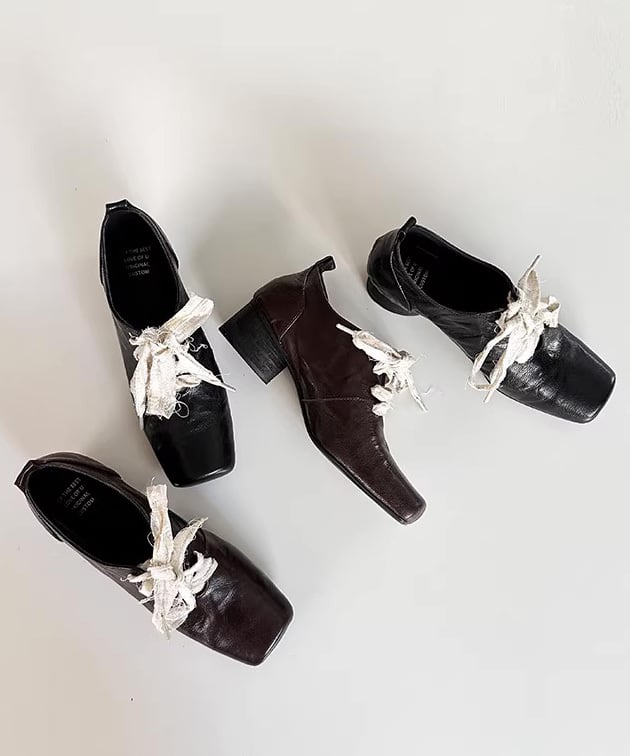 安定感のあるチャンキーヒールとレースアップデザインで、