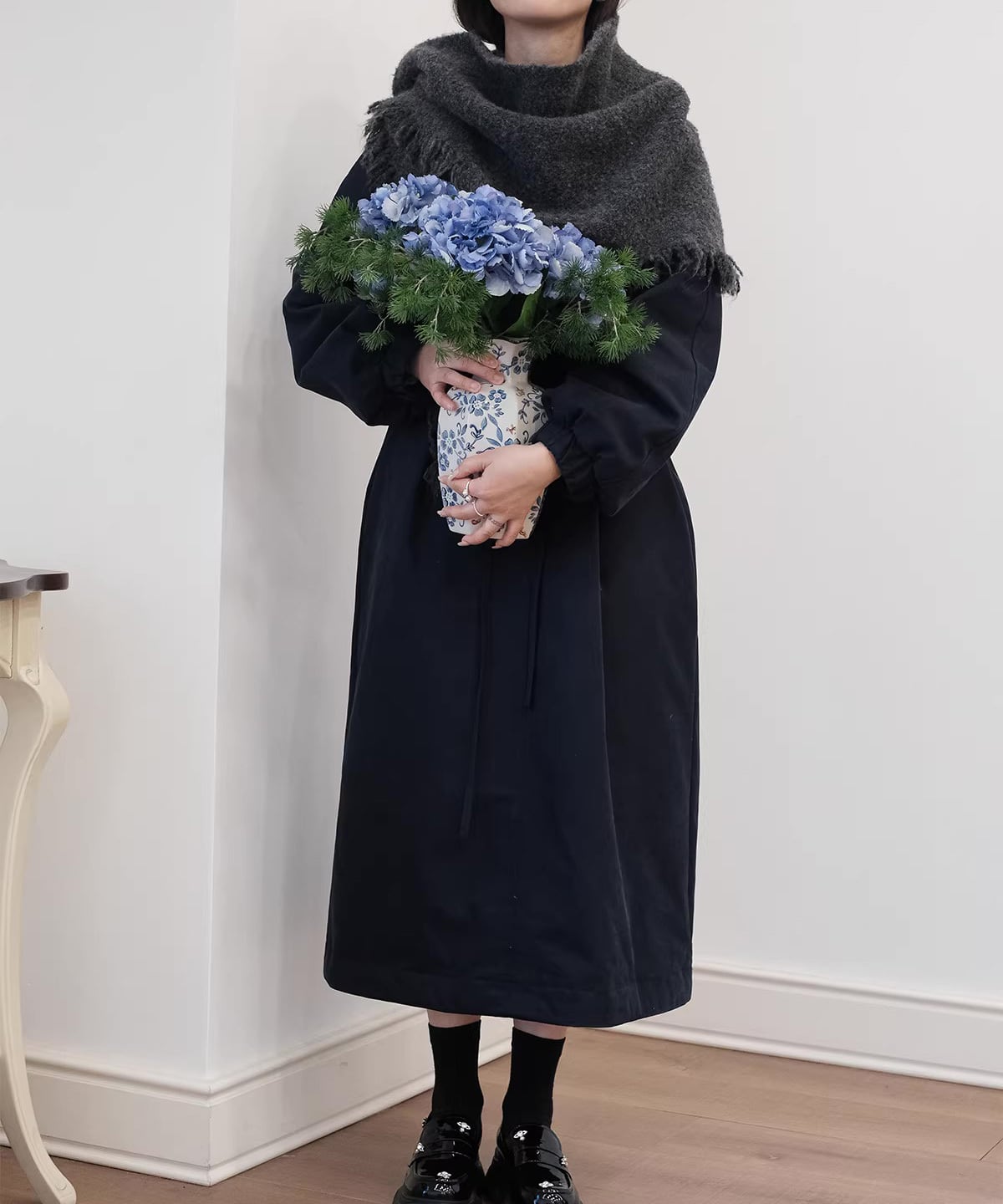 首元に巻くだけで、コーデに季節感と上品さをプラスしてくれます。
