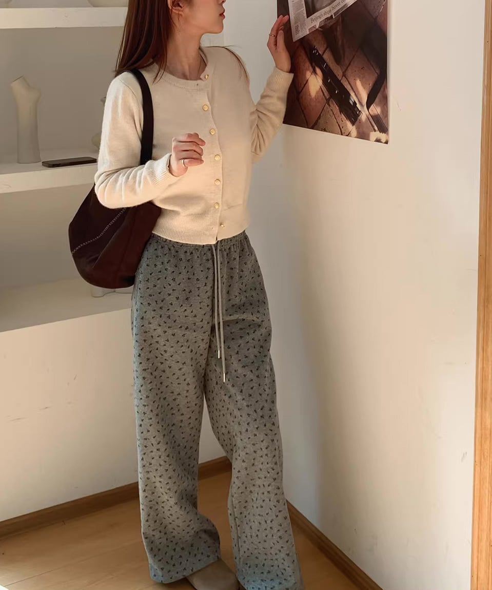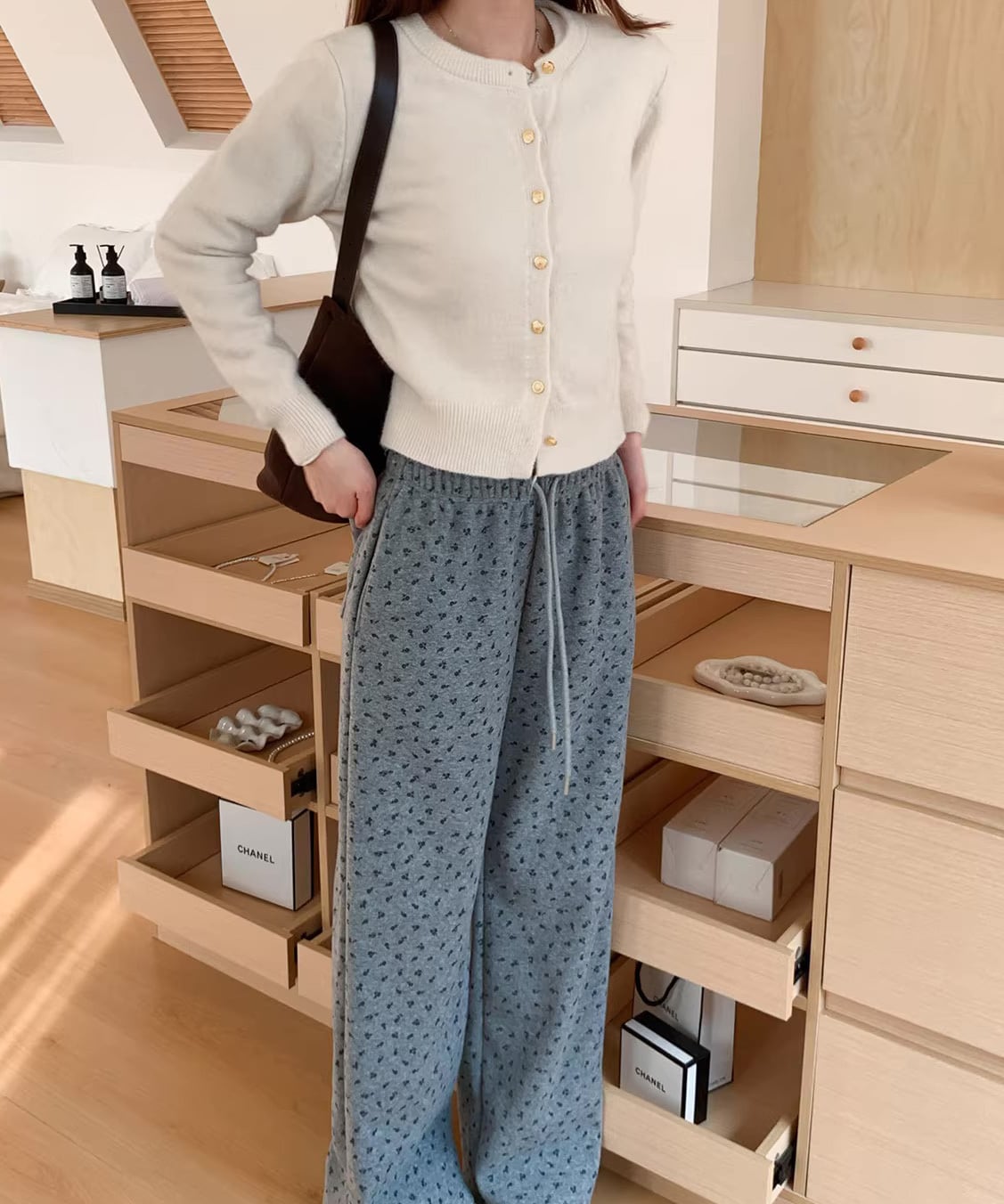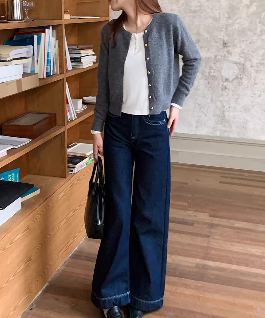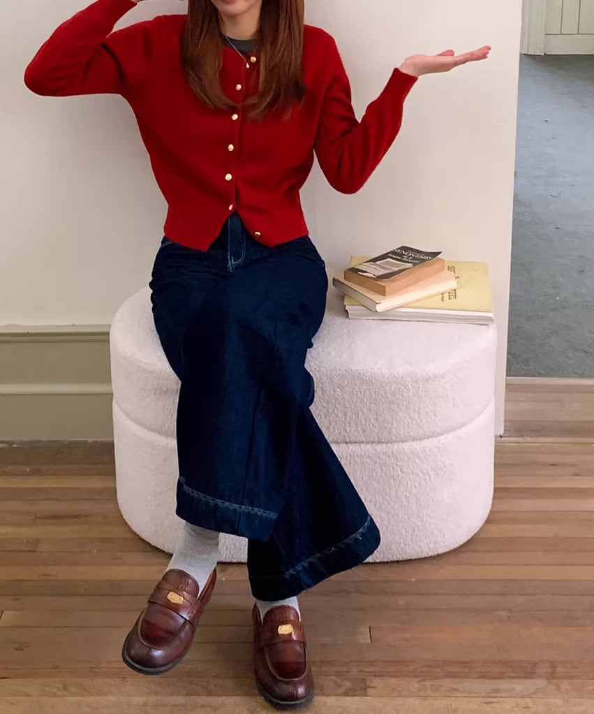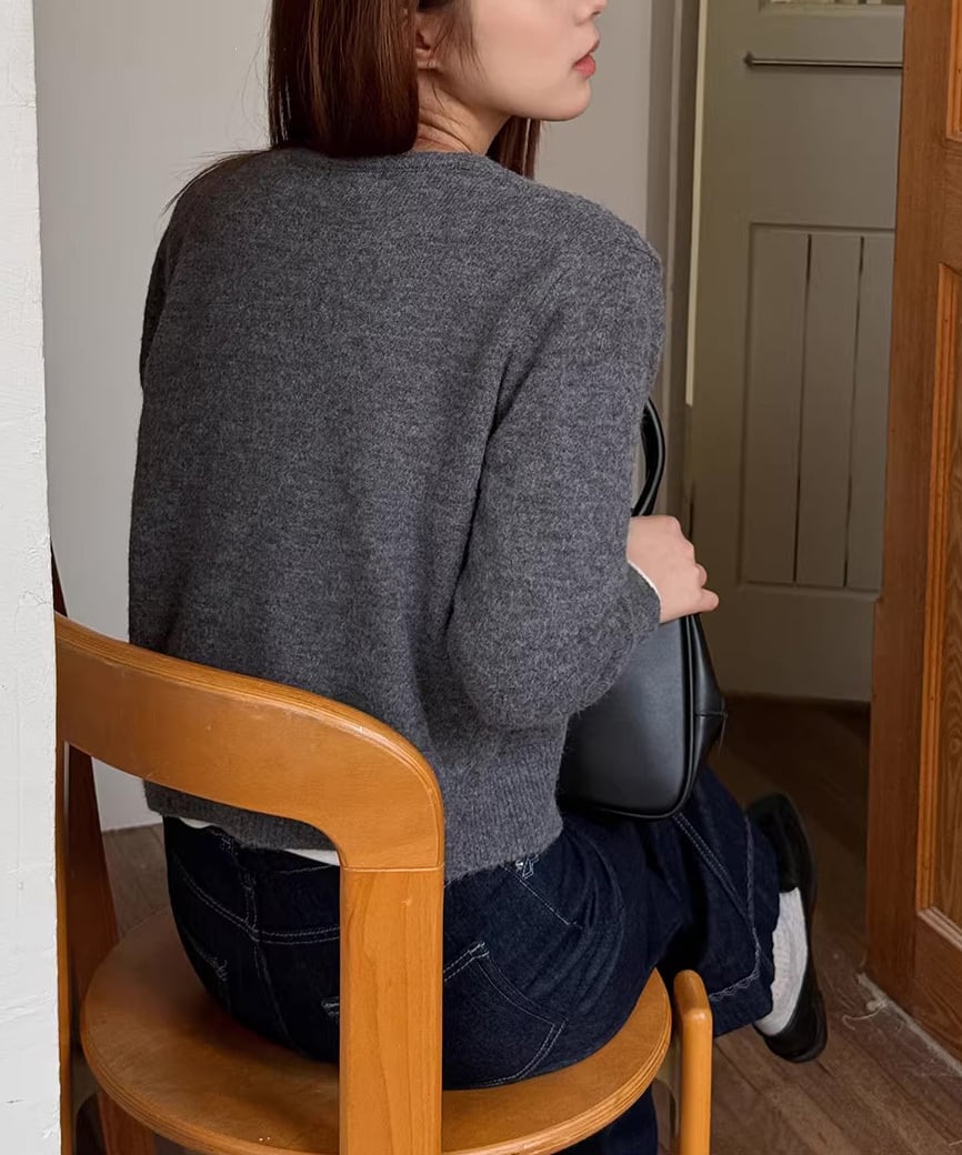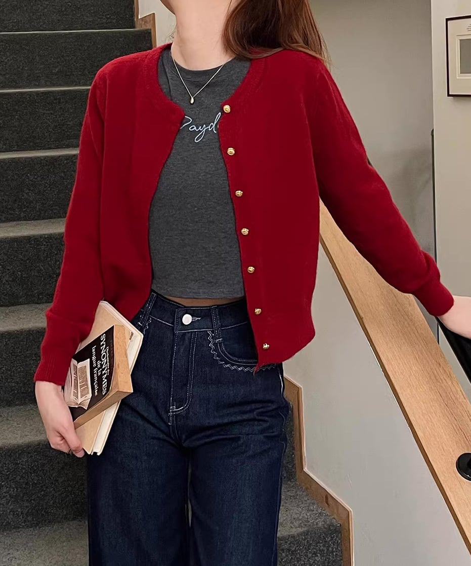 クラシカルな小粒のゴールドボタンがアクセントになったニットカーディガン。