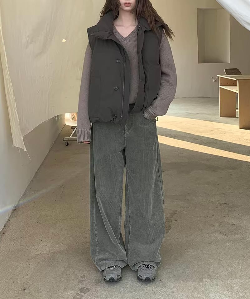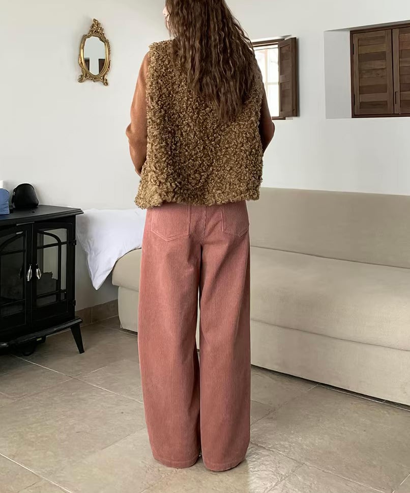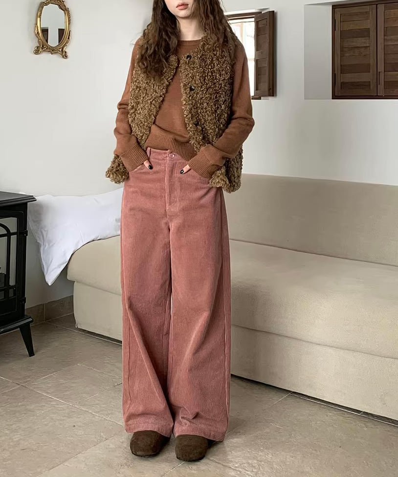 ハイウエストコーデュロイワイドパンツ Q0521