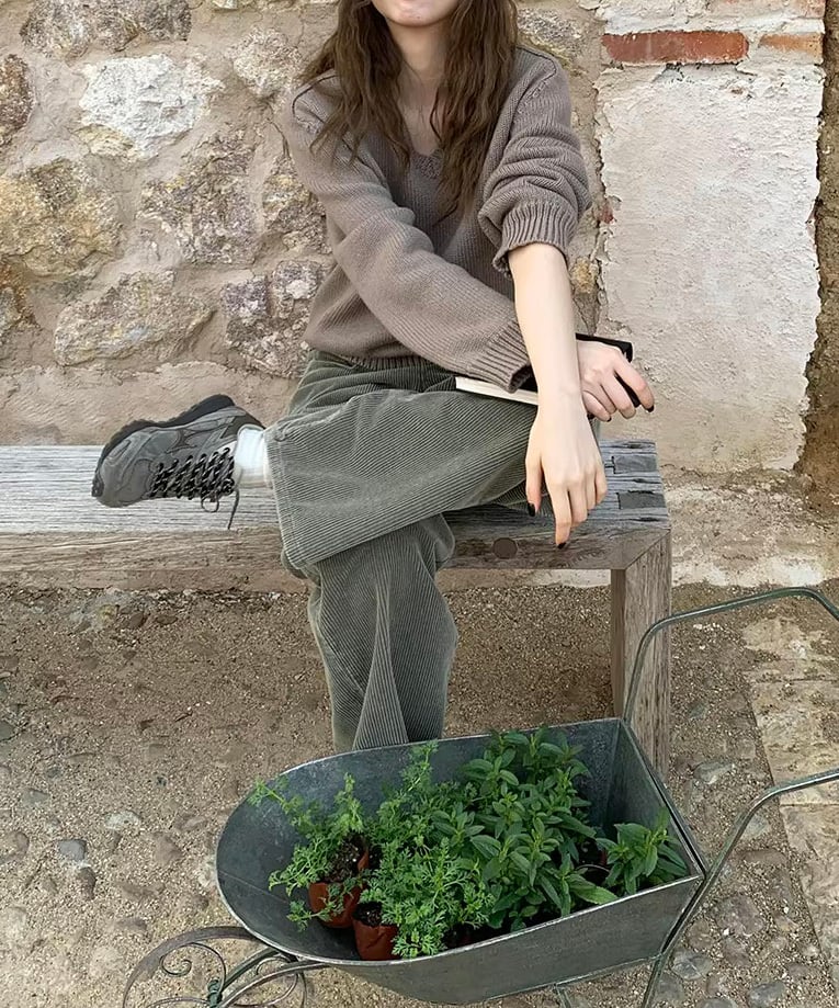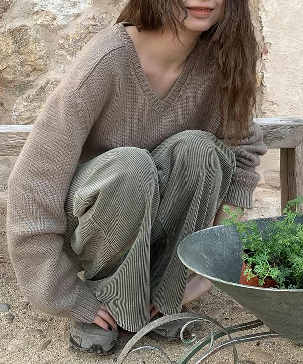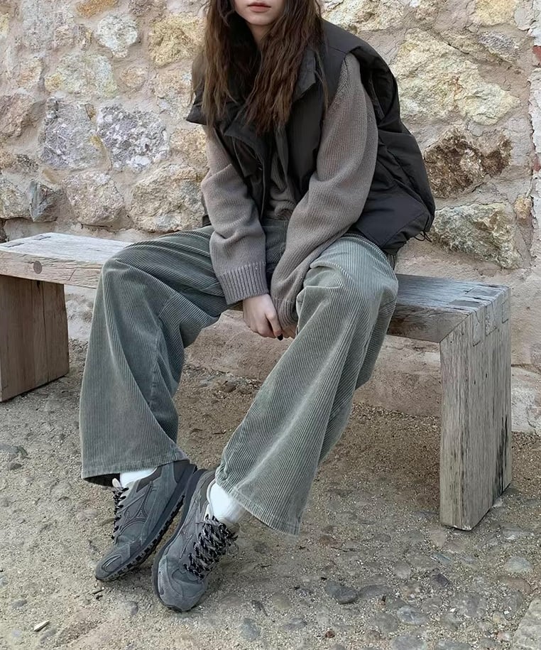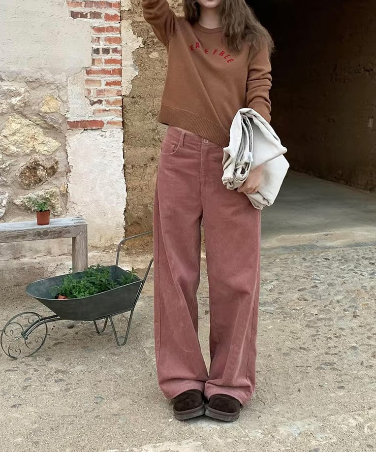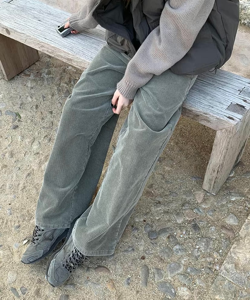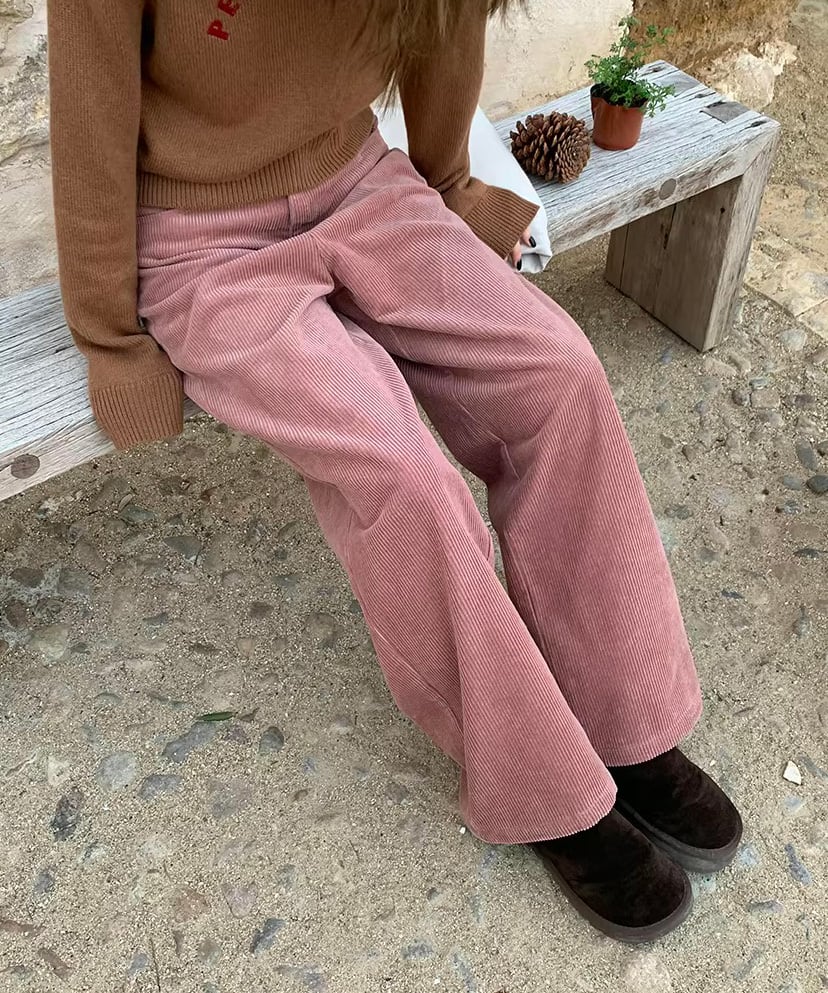 あたたかみのあるコーデュロイ素材を使用したワイドパンツ。