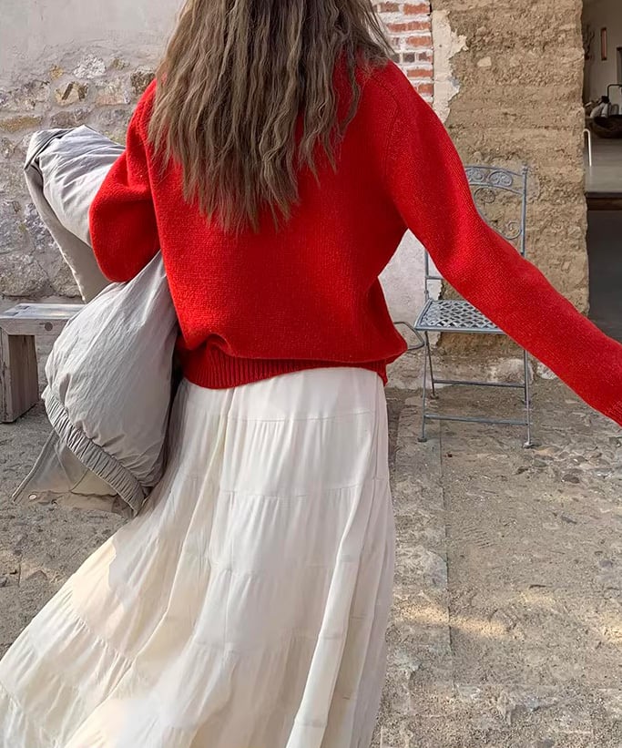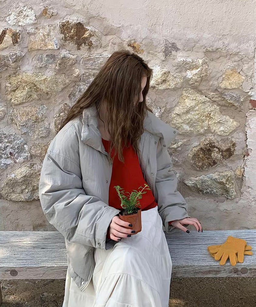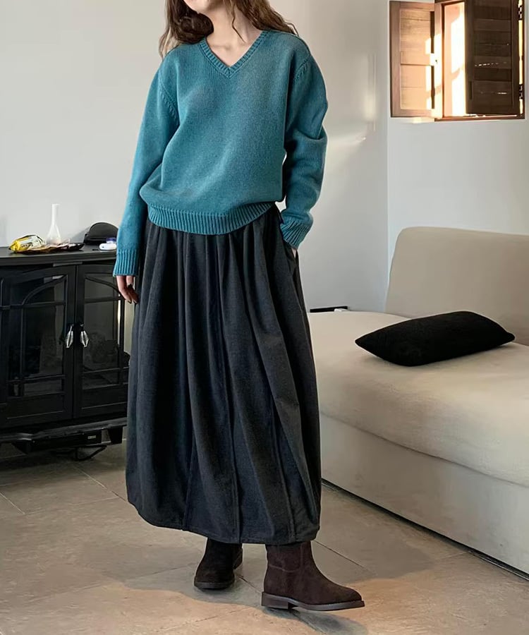シンプルながらも雰囲気があり、パンツにもスカートにも合わせやすい一枚。