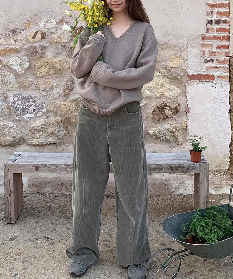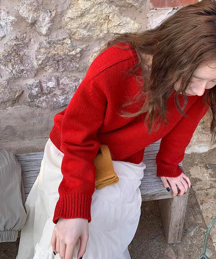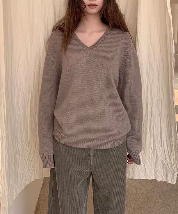程よく開いたVネックが印象的な、レトロムード漂うウールプルオーバー。