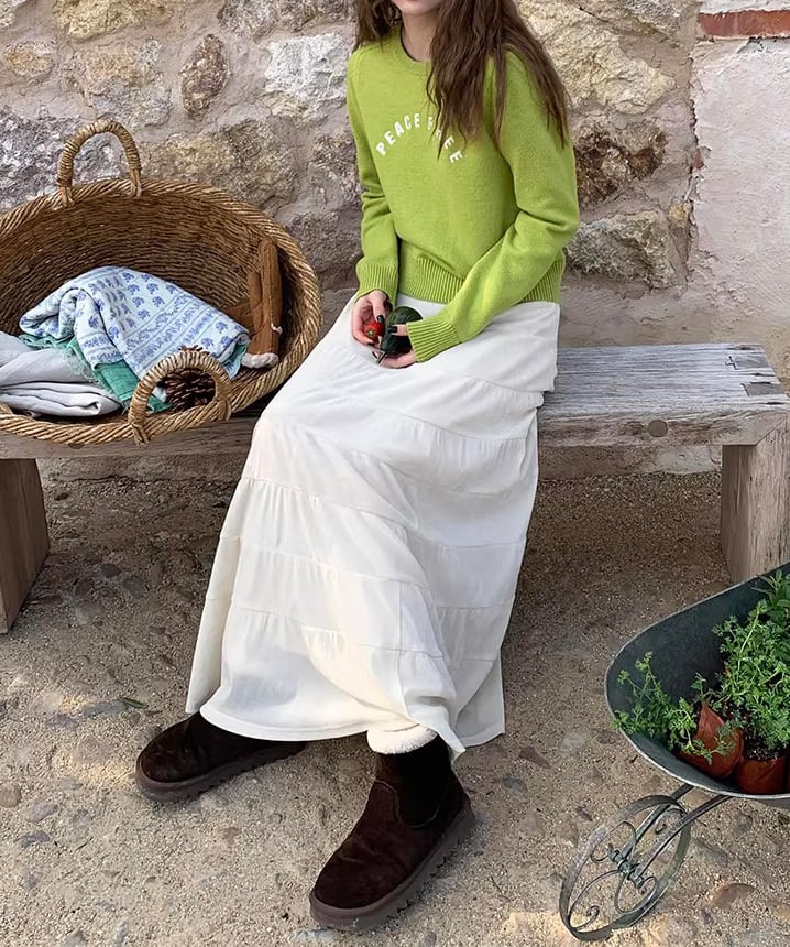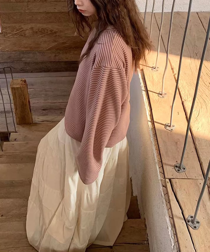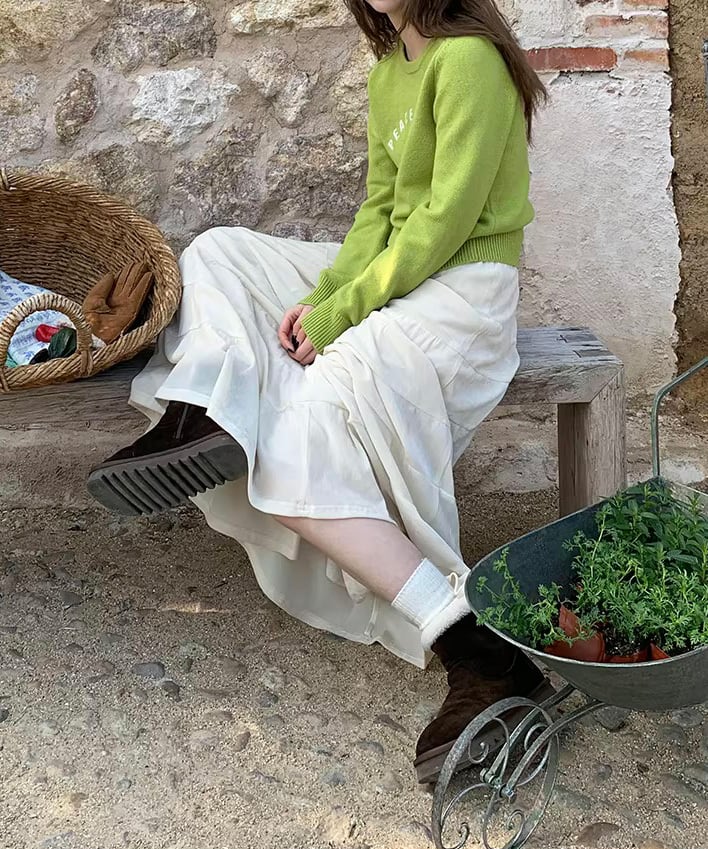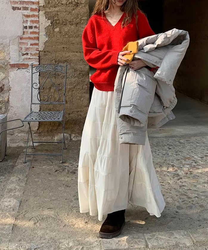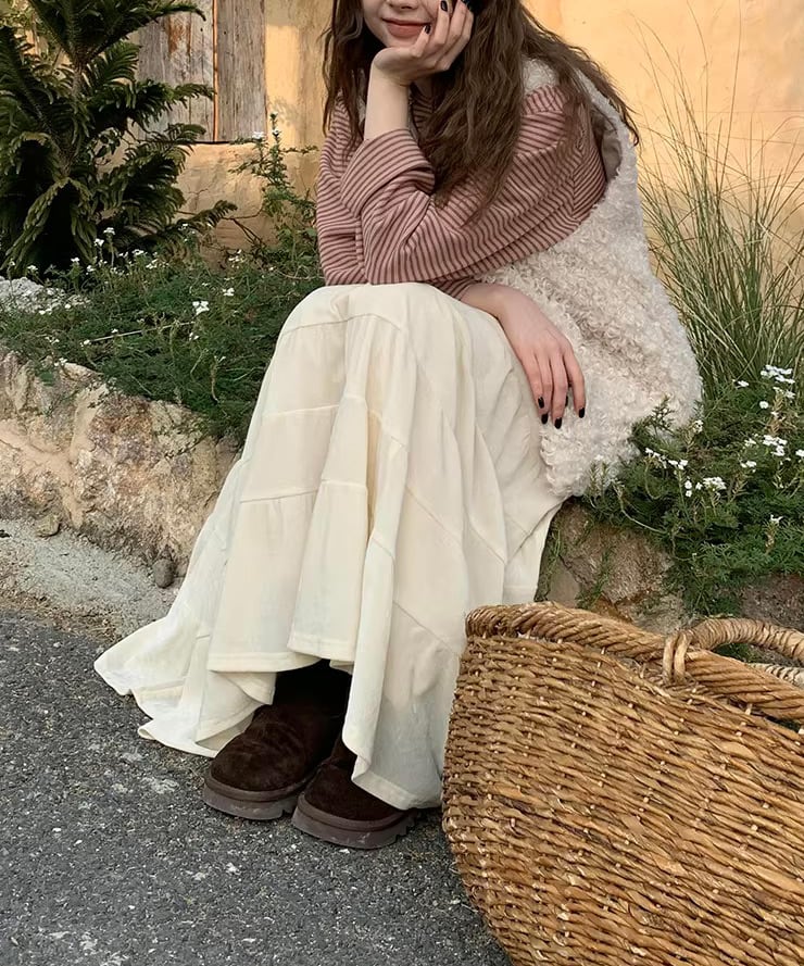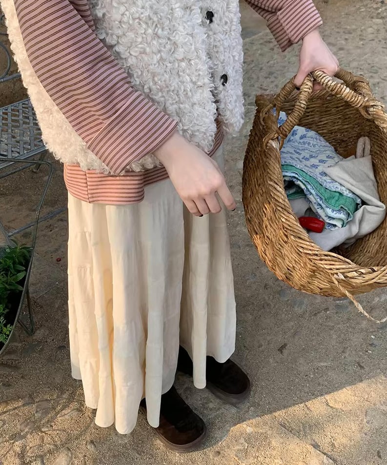 ふんわりと広がるティアードデザインが魅力のロングスカート。