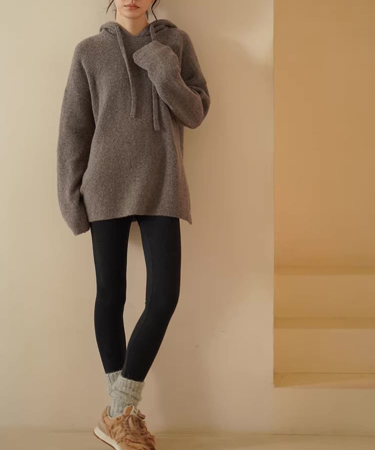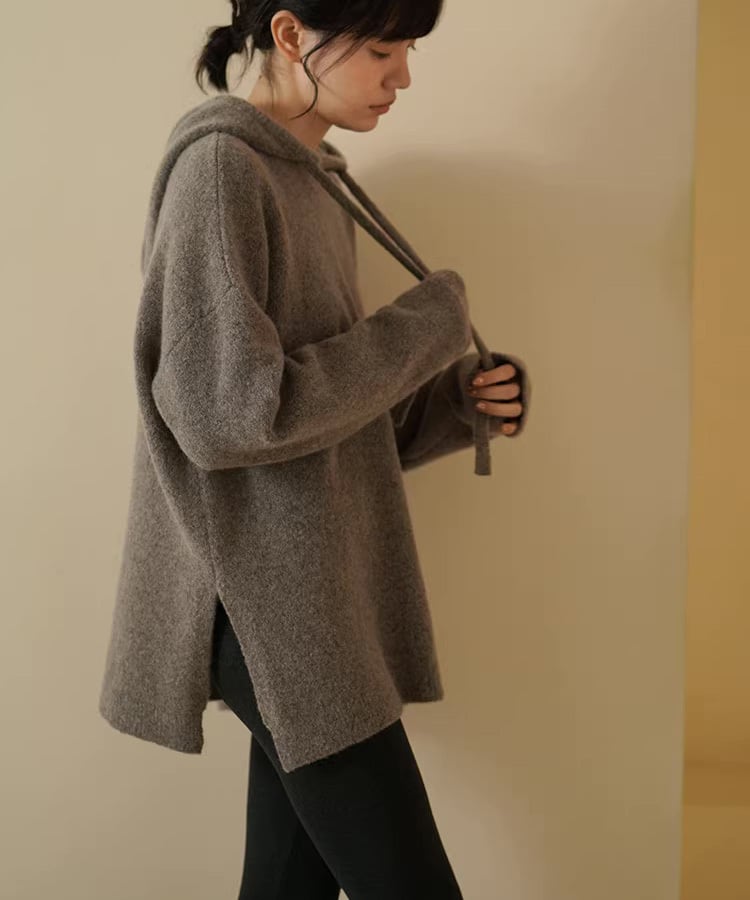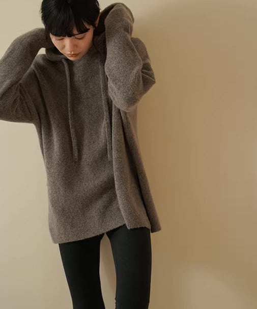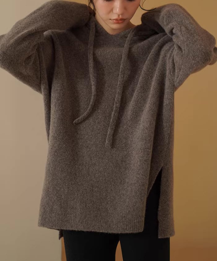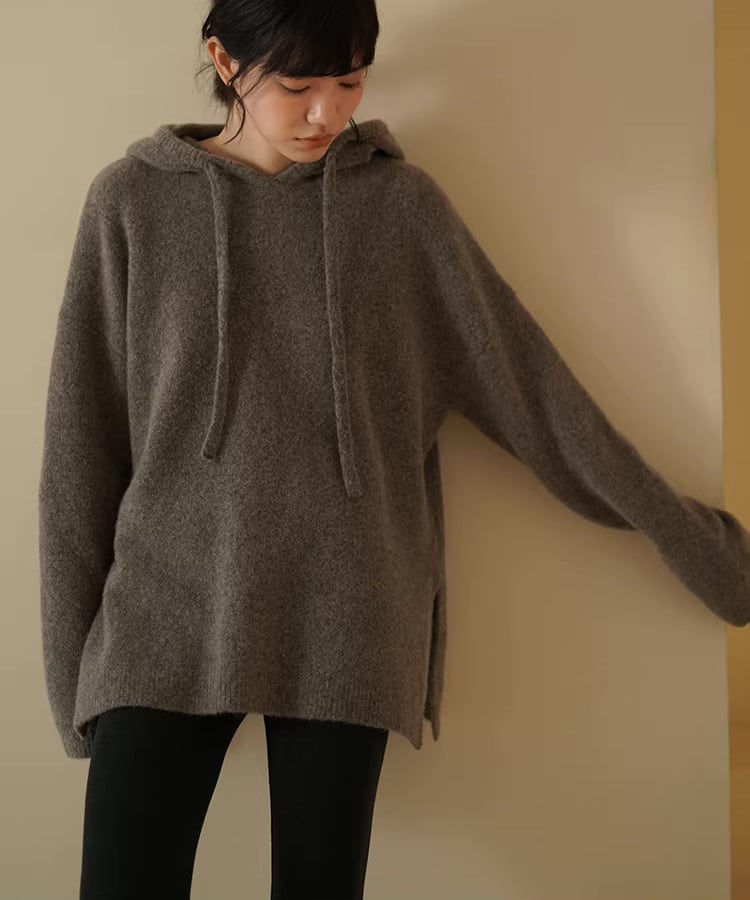 深みのあるブラウンカラーが印象的な、ルーズシルエットのウールニット。