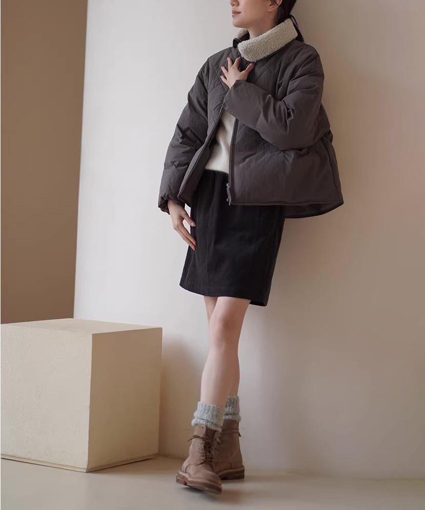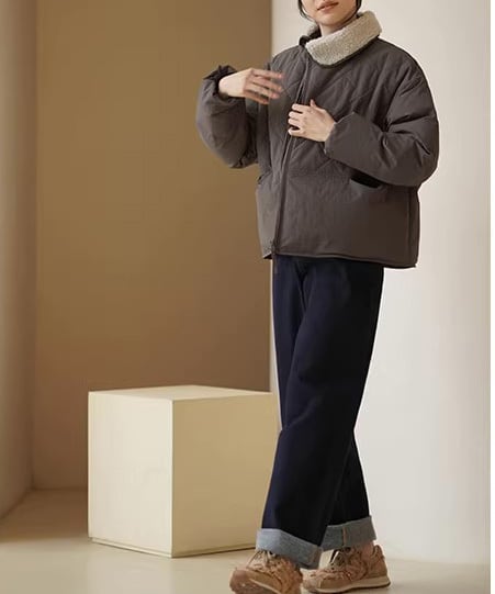 程よくゆとりのあるサイズ感で、ニットやスウェットの上からも着用しやすく、季節の変わり目に重宝する一着。