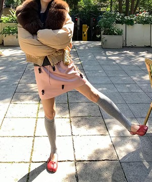 ニットやスウェットと合わせたミックスコーデもおすすめです。