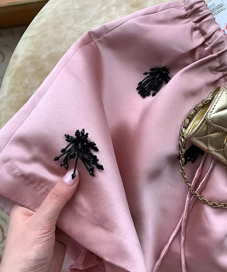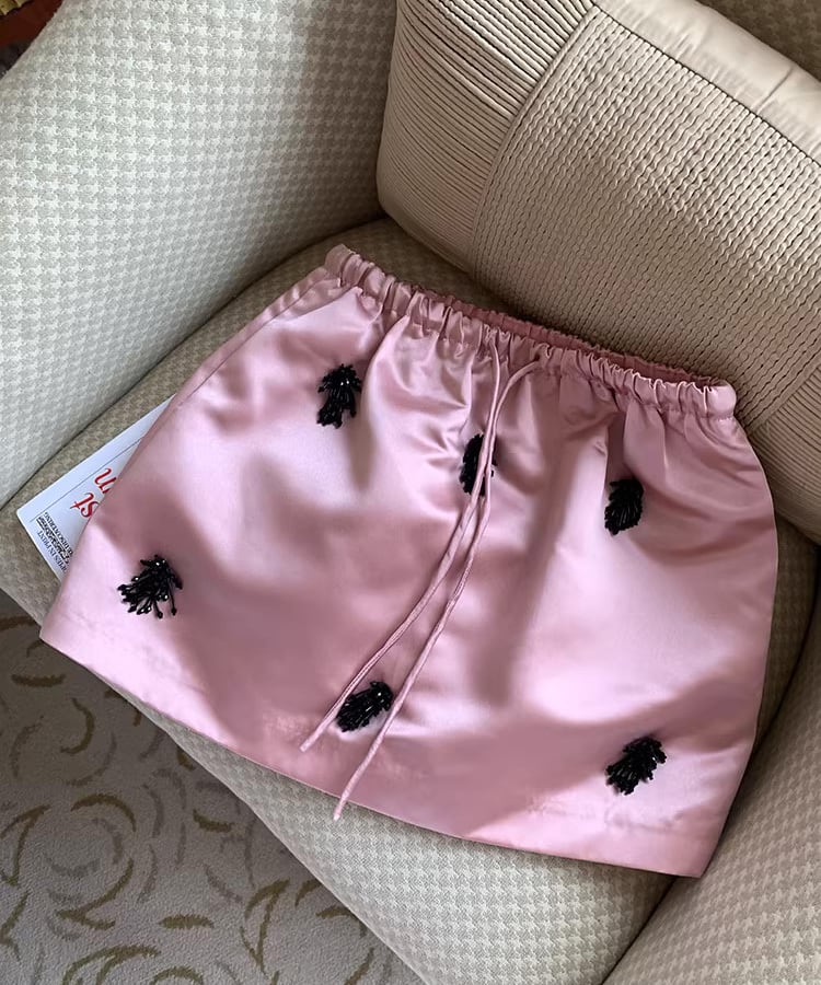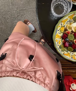 サテンピンクミディスカート Q0532