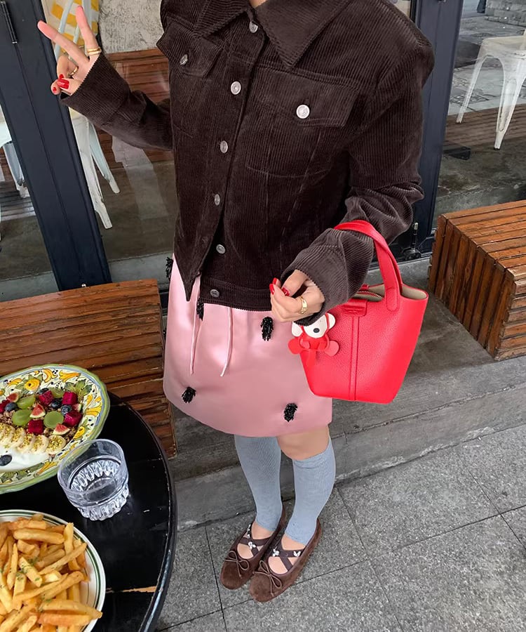 甘くなりすぎないピンクカラーで、大人のスタイリングにも自然に馴染みます。