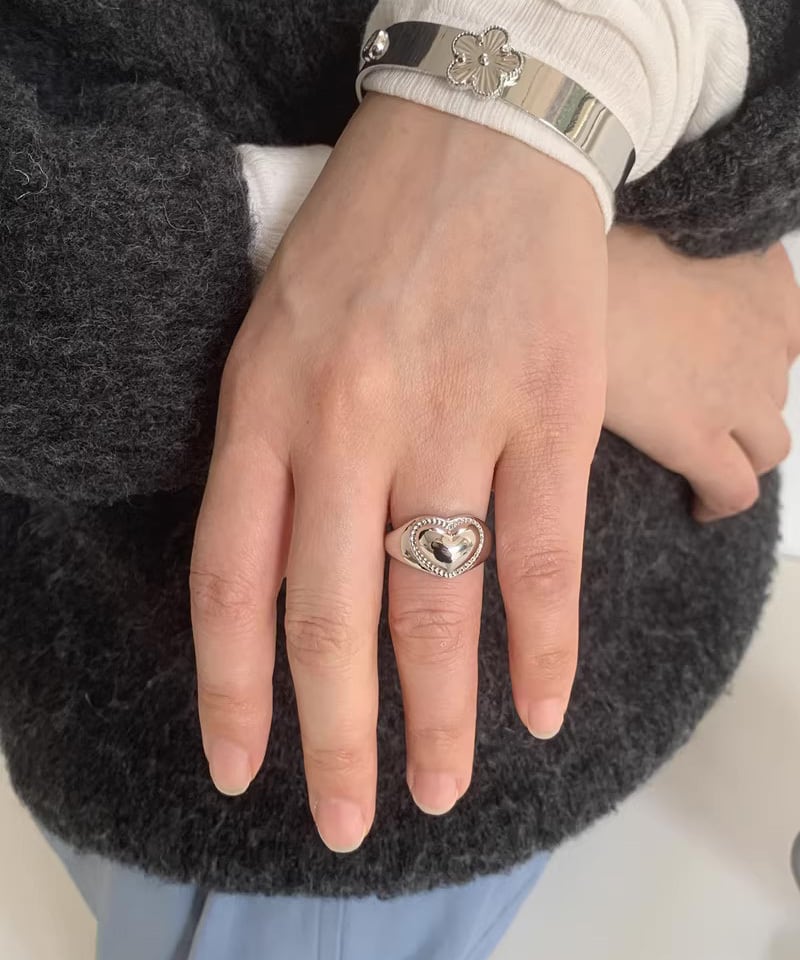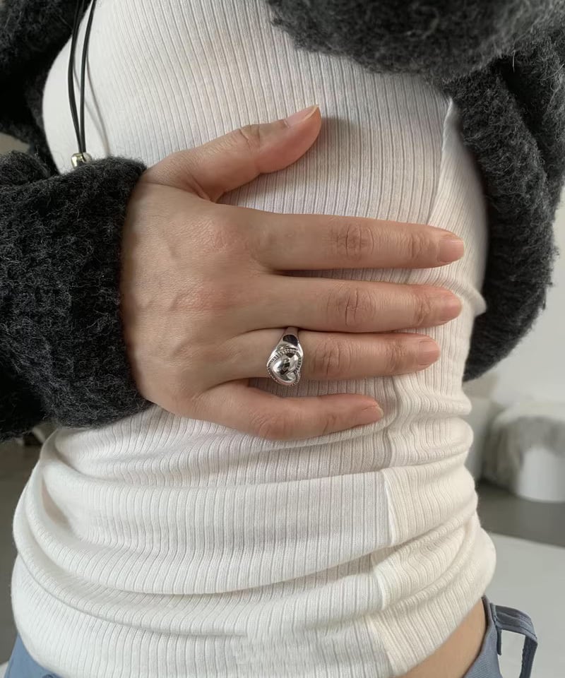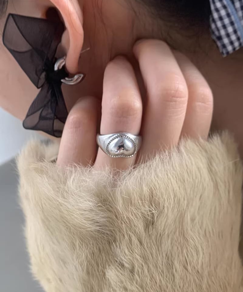 小ぶりなハートモチーフが可愛らしいデザインリング。