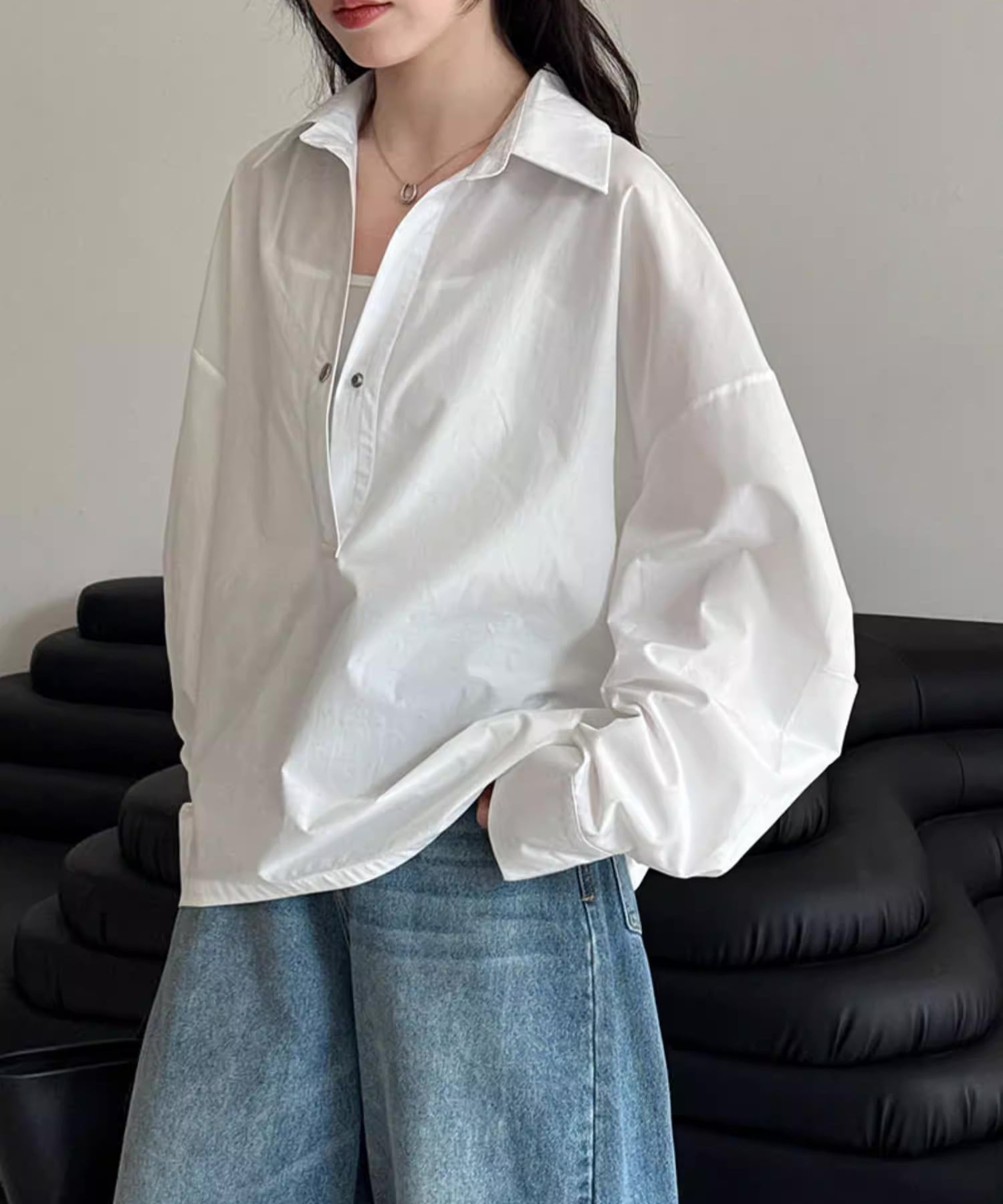 ルーズスキッパーワンボタンシャツ R0016