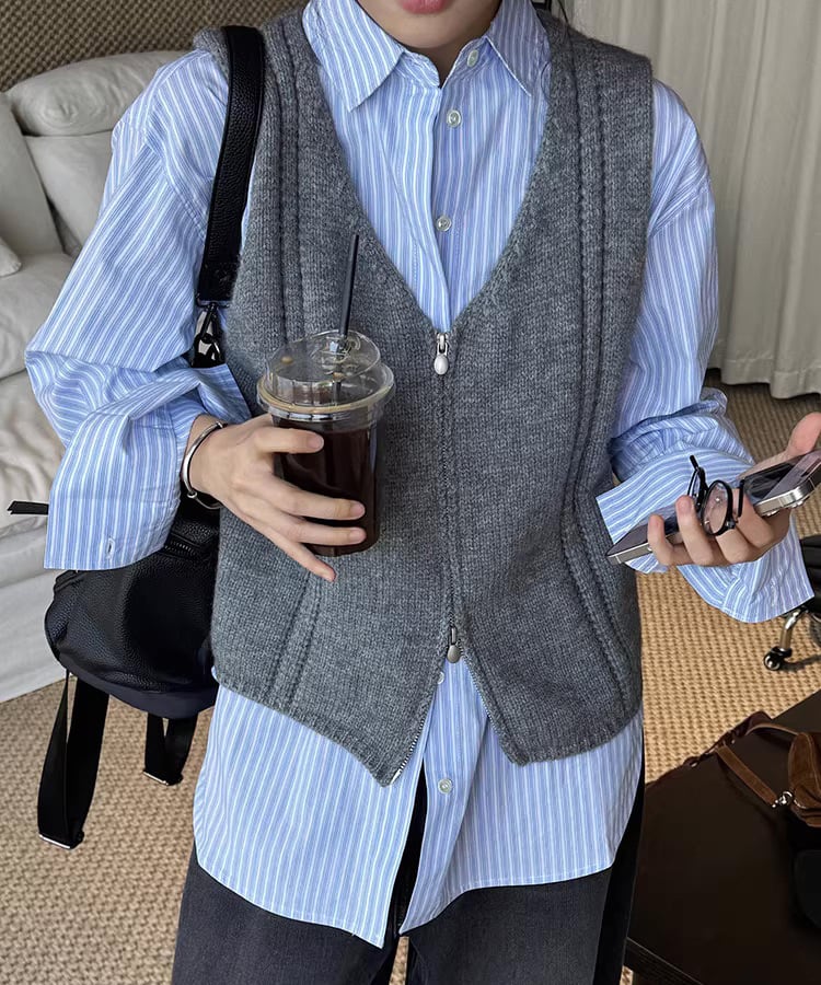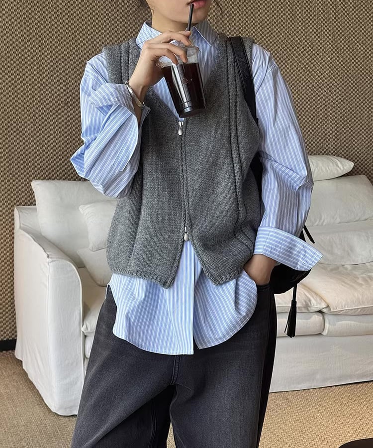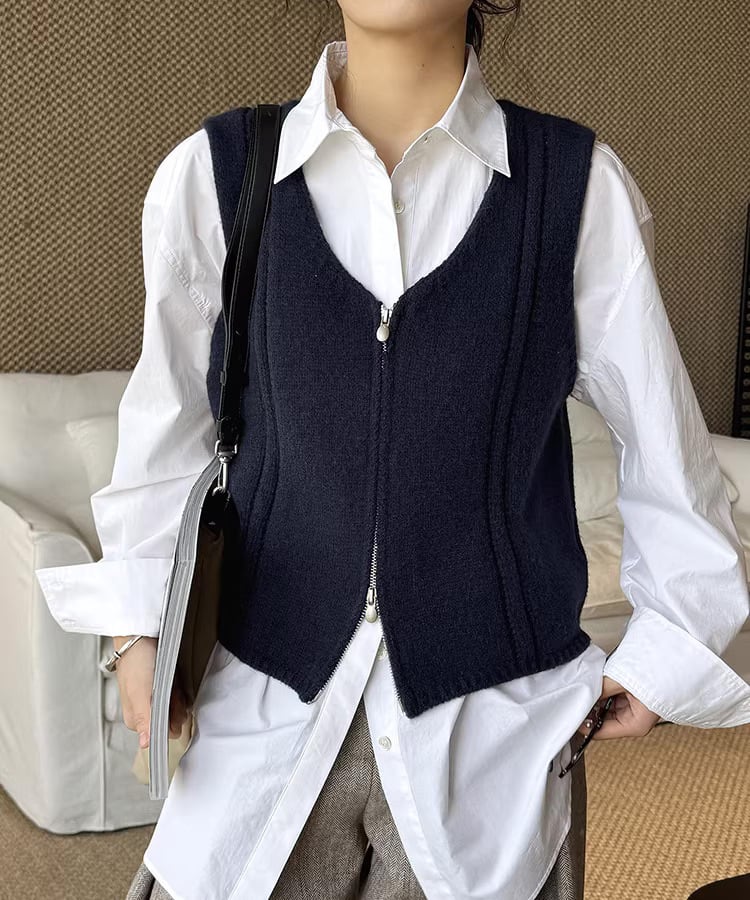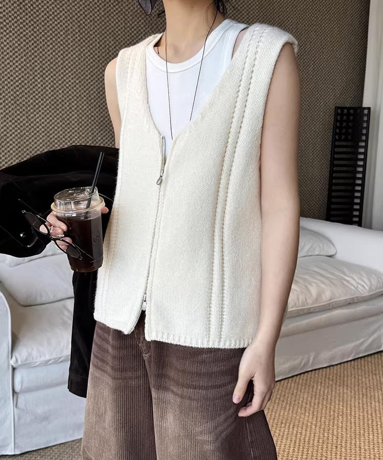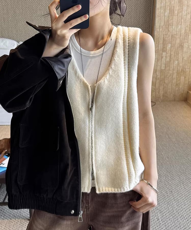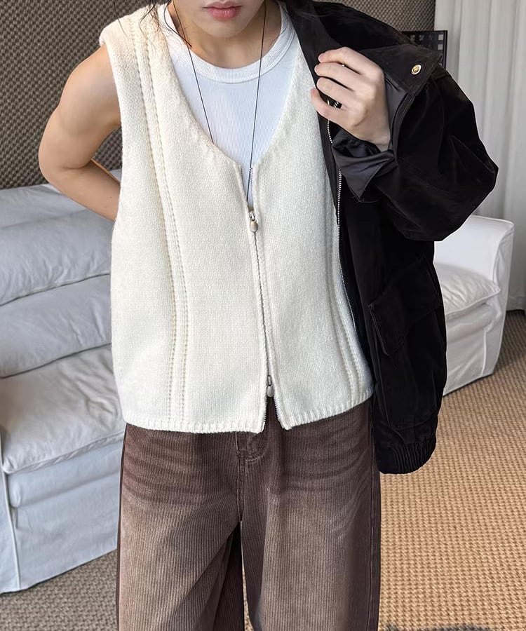 ダブルジップ仕様で着こなしの幅が広がるノースリーブベスト。