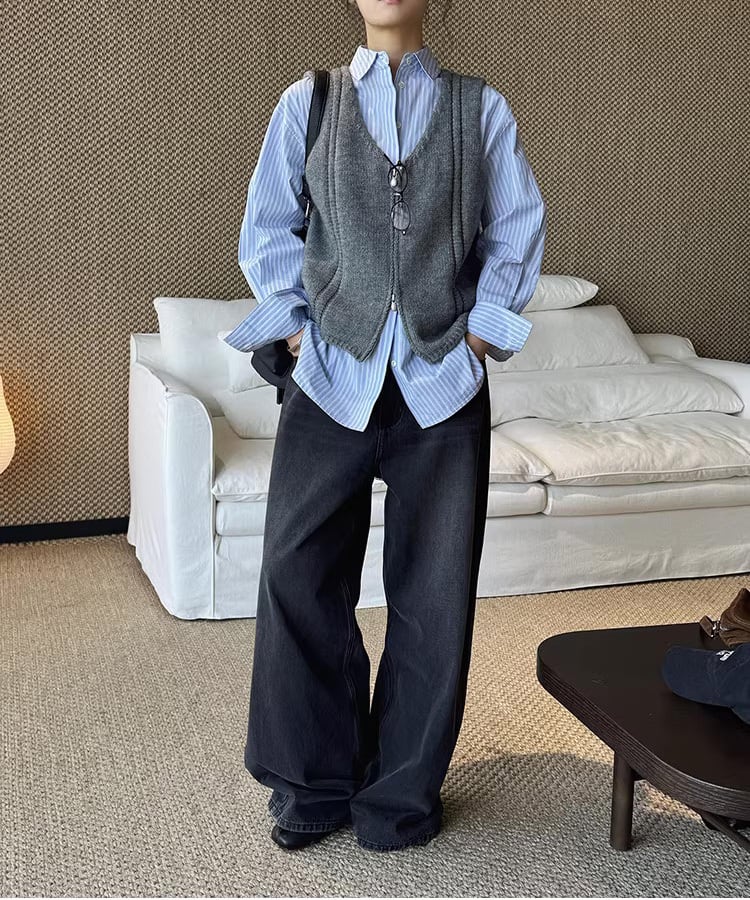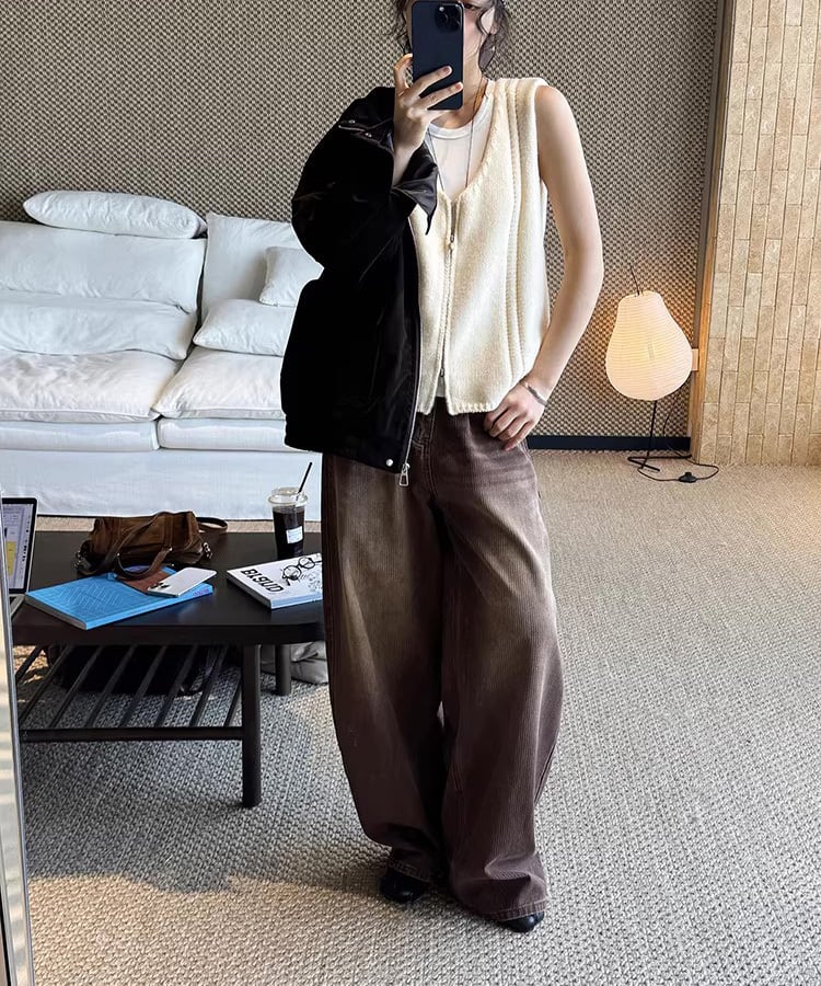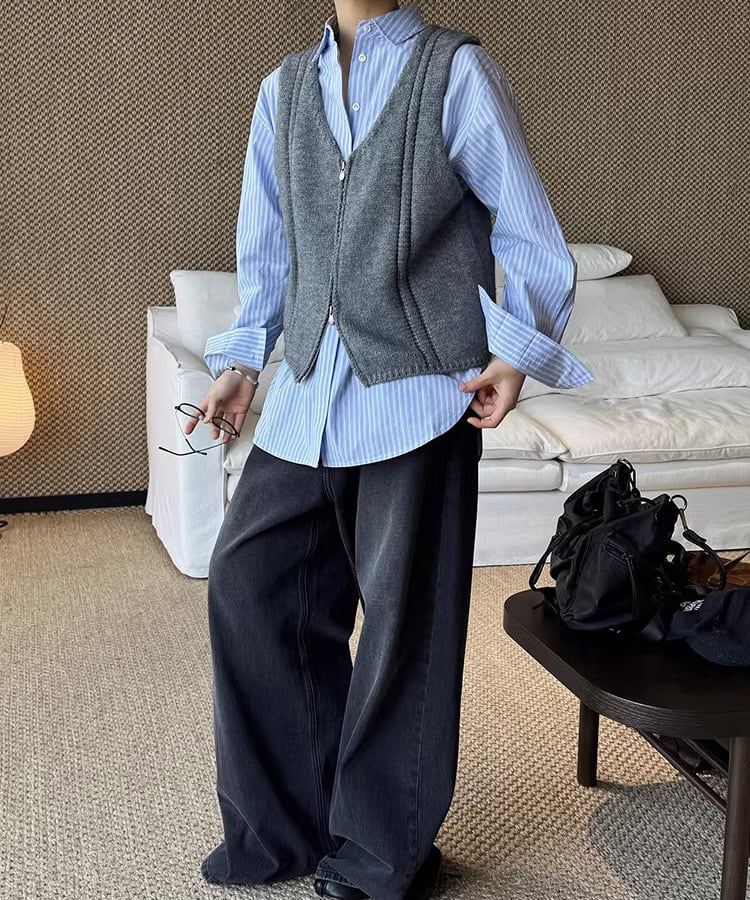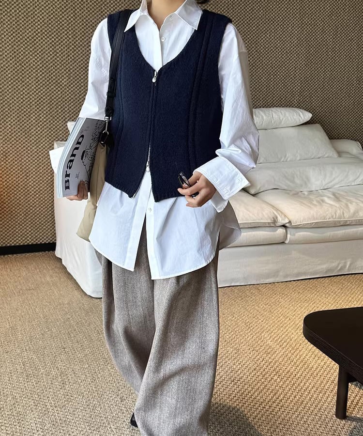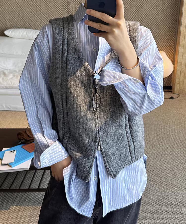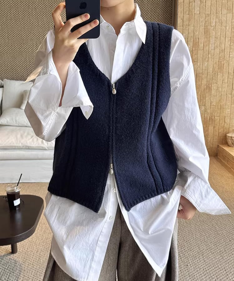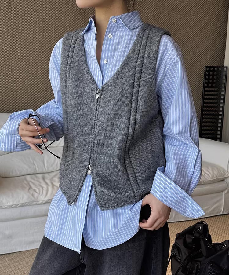 ダブルジップ仕様で着こなしの幅が広がるノースリーブベスト。