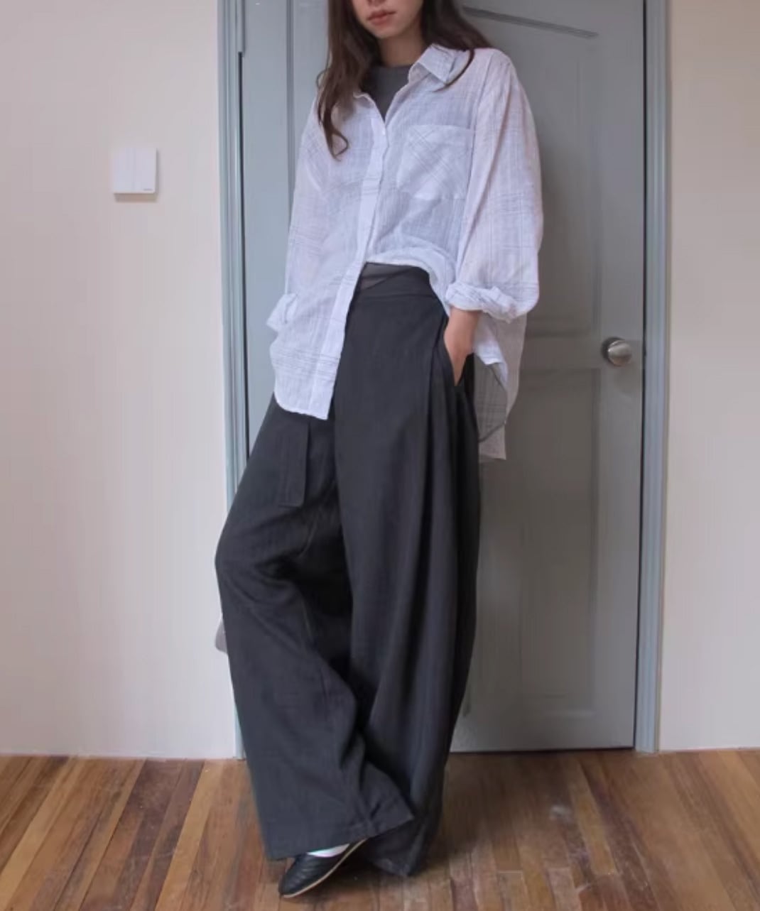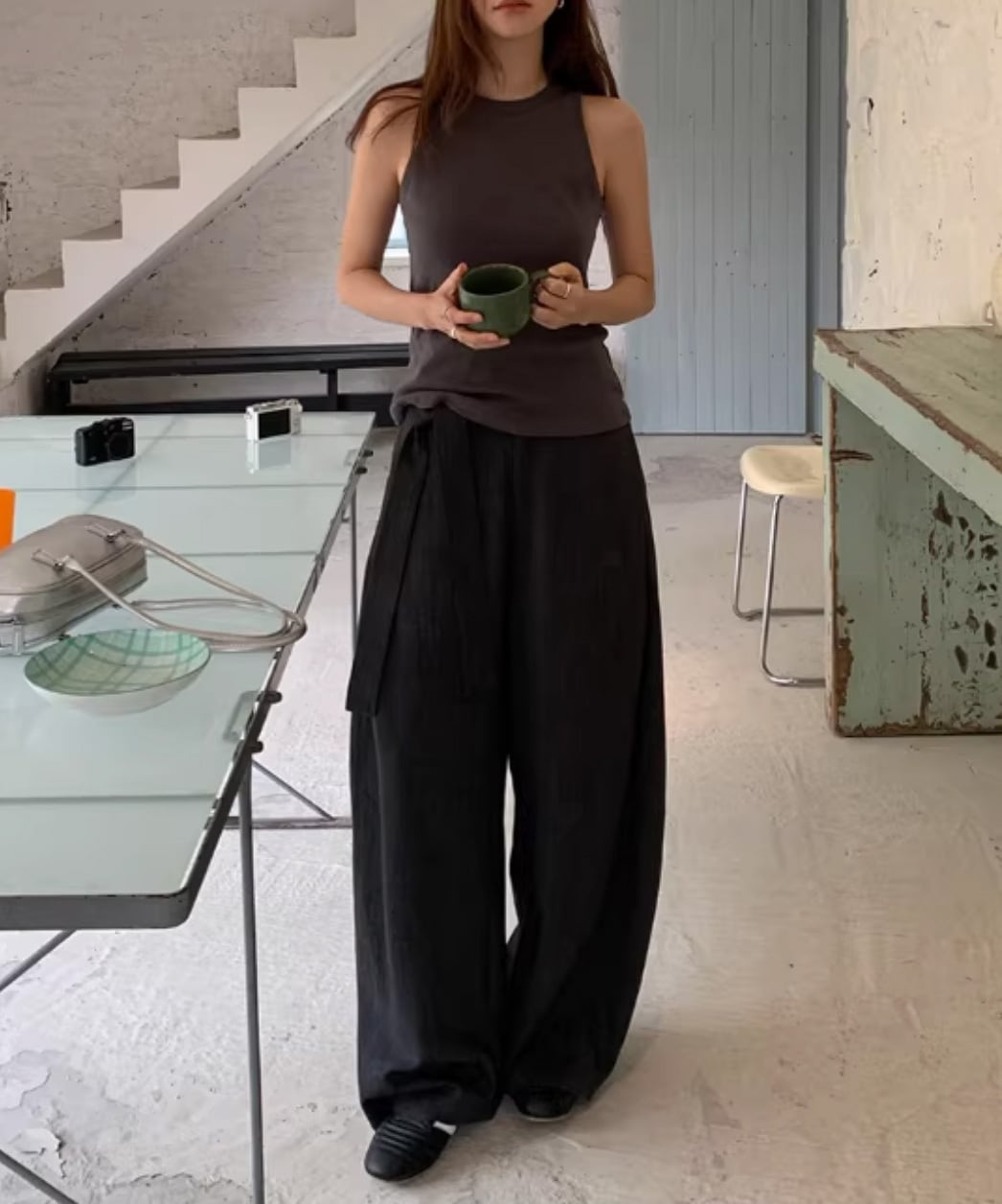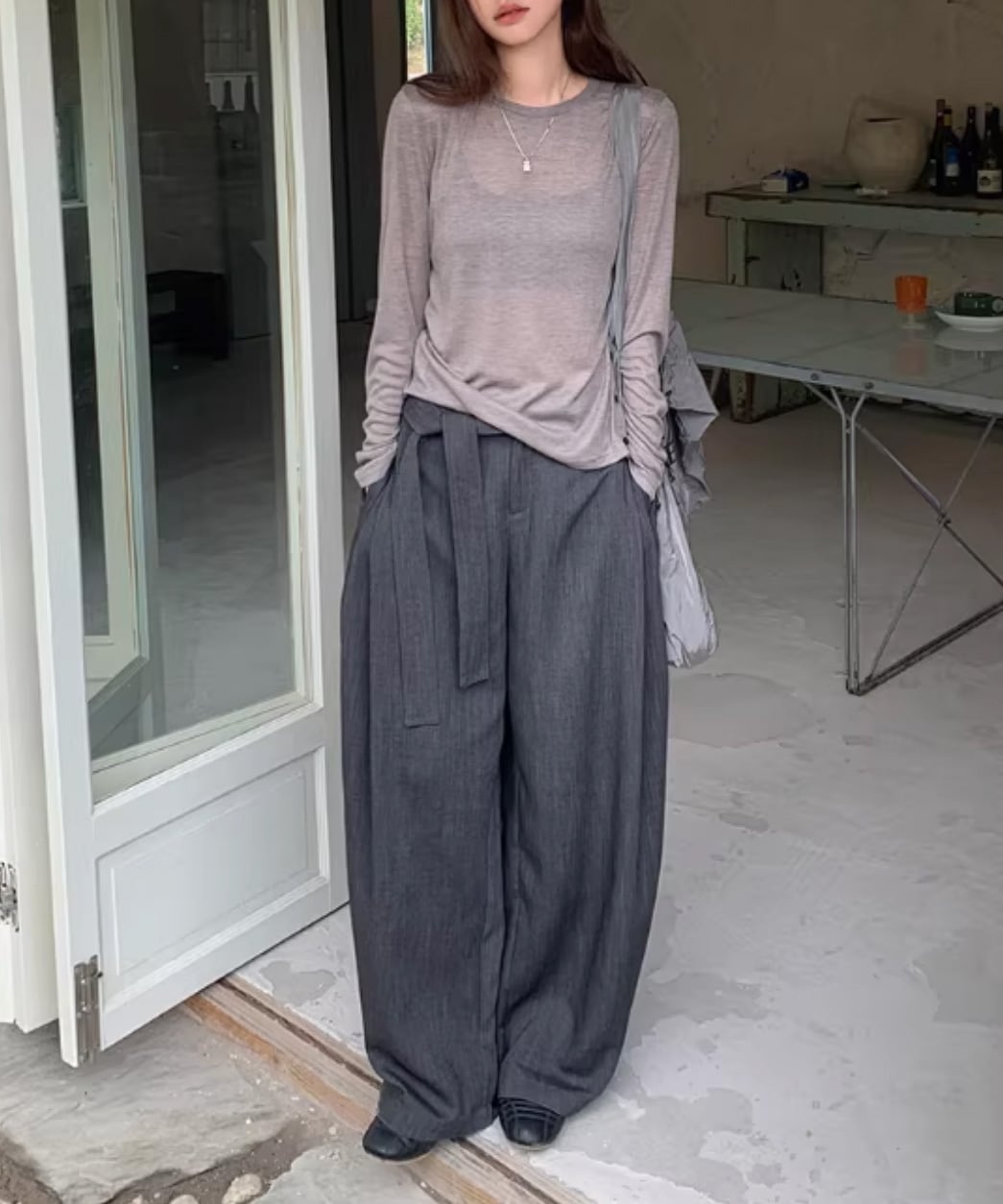 サイドタイ ドレープワイドパンツ R0041