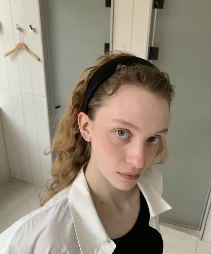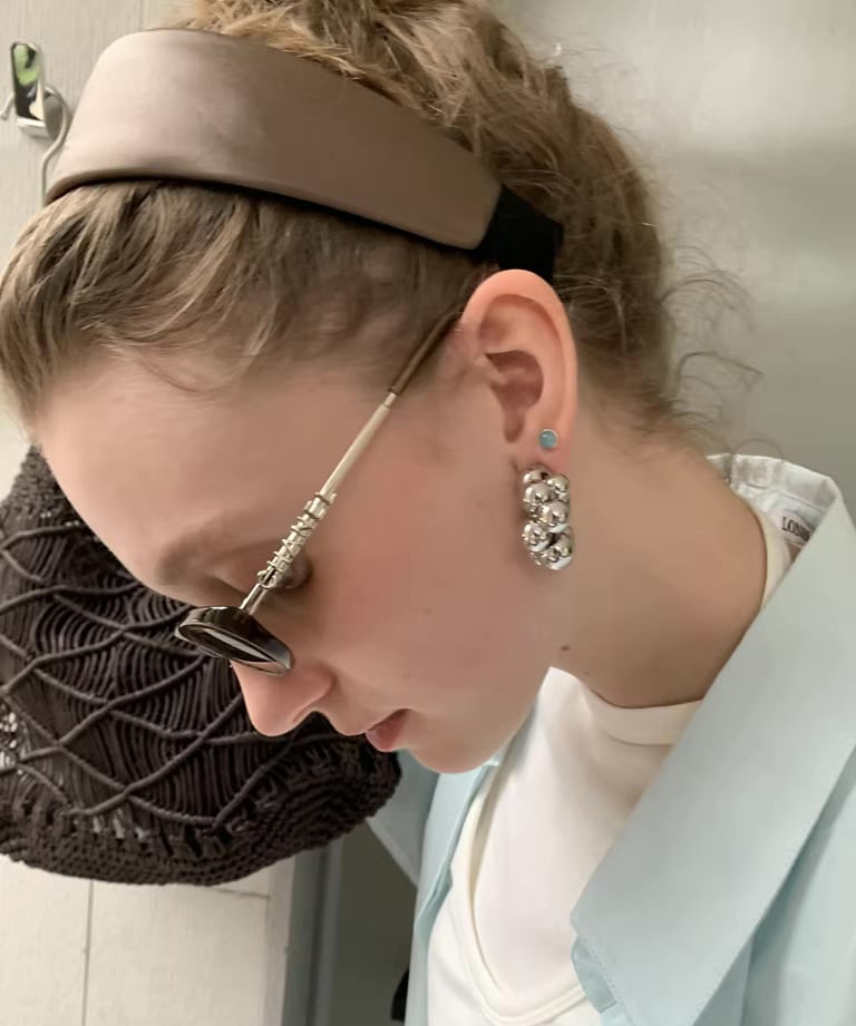 幅広デザインで程よいボリュームがあり、つけるだけで顔まわりを華やかな印象にしてくれます。