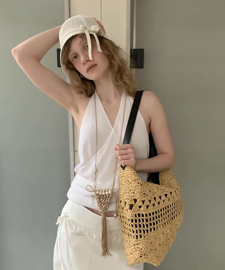 ビーズ編みとタッセルがポイントのミニネックレスバッグ。アクセサリー感覚で取り入れられるコンパクトなデザインで、コーディネートに遊び心をプラス。シンプルスタイルのアクセントにもおすすめです。