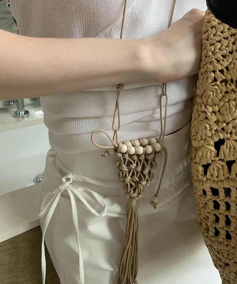 ビーズタッセルミニネックレスバッグ R0052